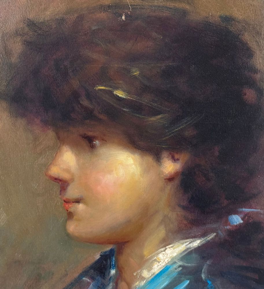 Dipinto olio su tela, periodo XX secolo scuola Italiana, raffigurante Profilo di giovane donna. Dimensioni compreso cornice: 58x67 cm. Dimensioni interno cornice: 40x50 cm. Da artista anonimo. Opera in buone condizioni.