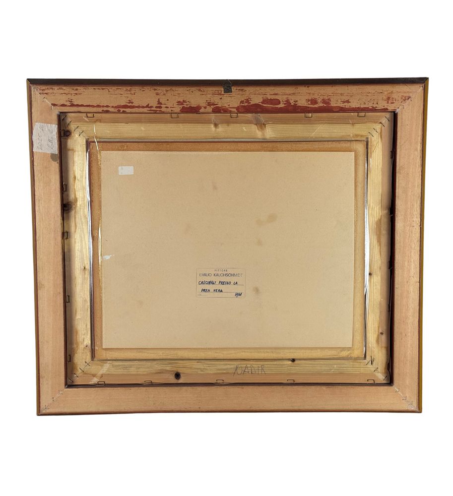 Dipinto olio su cartoncino, periodo XX secolo scuola Italiana, raffigurante Paesaggio di campagna. Dimensioni compreso cornice: 73x62 cm. Dimensioni interno cornice: 50x40 cm. Reca firma in basso a sinistra EMILIO KALCHSCHMIDT (1902-1983). Opera in buone condizioni.
