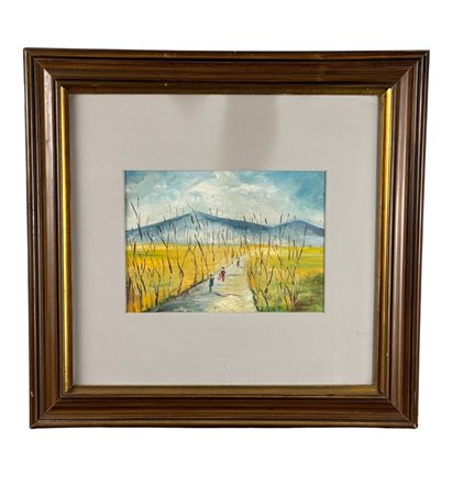 Dipinto olio su tavola, periodo XX secolo scuola Italiana, raffigurante Paesaggio. Dimensioni compreso cornice: 50x48 cm. Dimensioni interno cornice: 26x18 cm. Reca firma in basso a destra S. Cannata. Opera in buone condizioni.