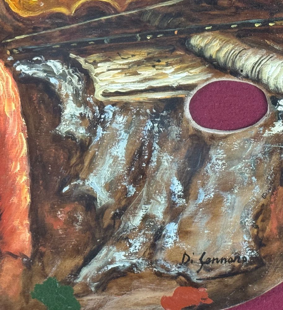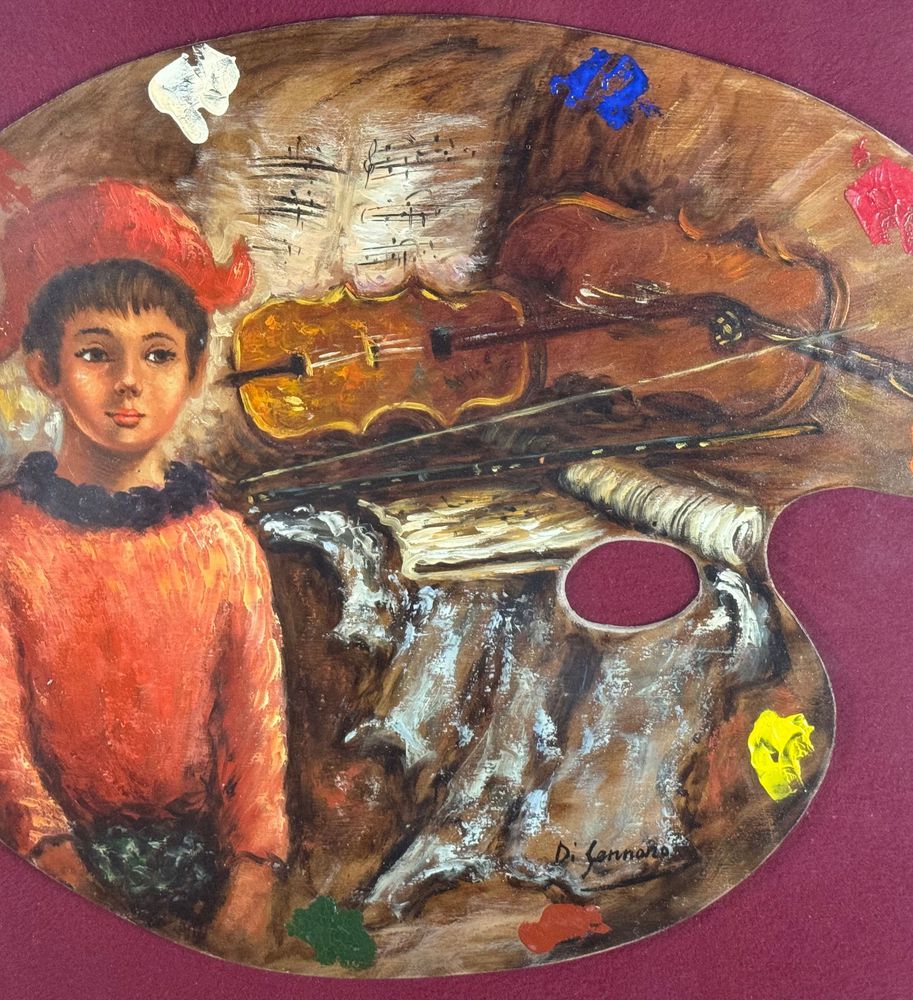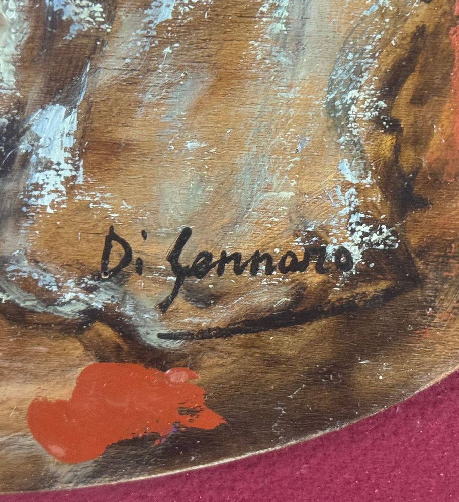 Dipinto olio su tavola, periodo XX secolo scuola Italiana, raffigurante Il Violinista. Dimensioni compreso cornice: 67x57 cm. Dimensioni interno cornice: 50x40 cm. Reca firma in basso a destra Di Gennaro. Opera in buone condizioni.