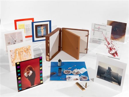 NOUVEAU REALISME valigia contenente opere multiple Deschamps, Niki de St. Phalle, Rotella, Villeglé Heins, Armand, Dufrê Christo, Cé Pierre Restany, Spoerri, cm 53,5x58x13; es. 6/600 Edito da Ars Viva Editions nel 1973 Contiene una serigrafia di Yves Klein non firmata impressa per i tipi delle Arti Grafiche Moretti Milano nel mese di agosto 1973