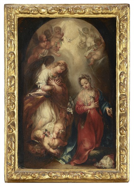 ANDREA CELESTI "Annunciazione"olio su tela (cm 53,5x37,5)in cornice(qualche r