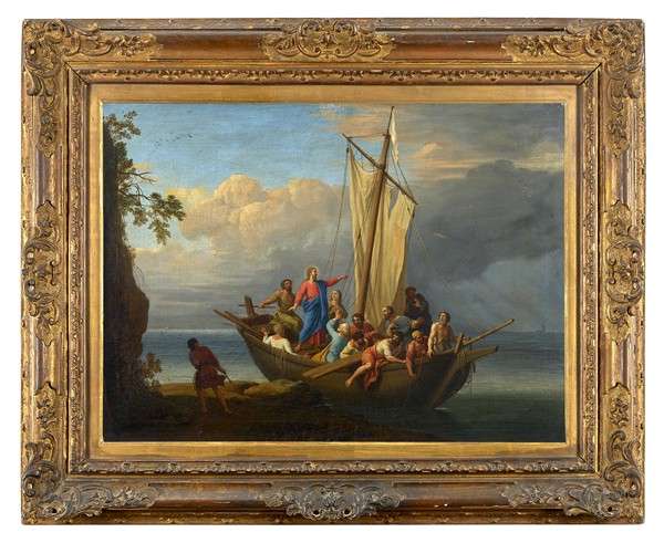 Coppia di dipinti raffiguranti "Vocazione di Pietro" e "Pesca miracolosa"