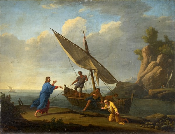 Scuola del secolo XVIII Coppia di dipinti raffiguranti "Vocazione di Pietro" e