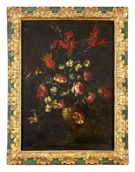 Margherita Caffi (attr.) "Vaso di fiori" olio su tela (cm 73x52) in cornice ant