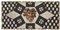 Antique mosaic floor on marble with geometric decorations centered by the face of the god Bacchus in hexagonal medallion. Resting on a carved and gilded wooden wall table (cm 132x96x64) (defects and restorations)