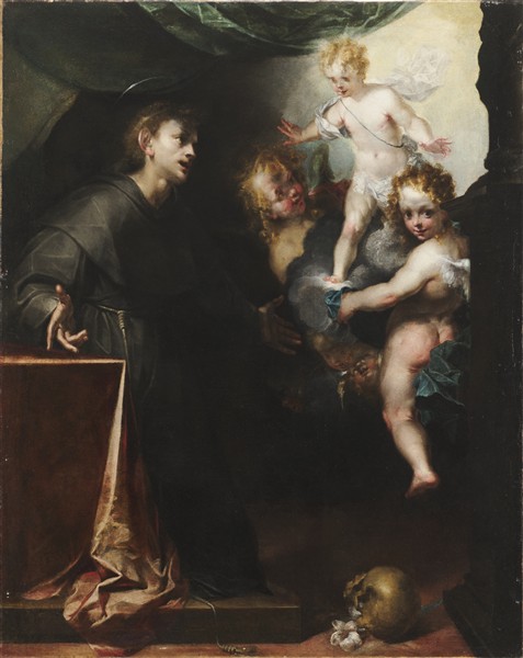 Domenico Piola "Apparizione di Gesù Bambino a sant'Antonio da Padova"olio su te