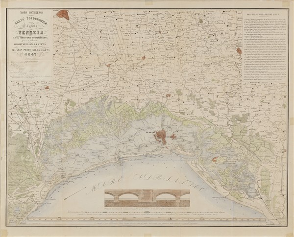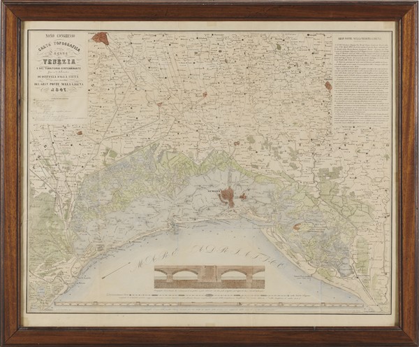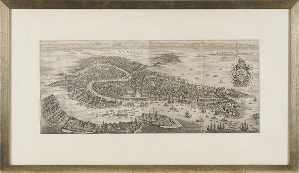 Lot consisting of an etching by Peter Van der Aa from the work "Thesaurus Antiquitatum et Historiarum Italiae" (1704), an etching by Matthäus Merian depicting the map of Venice from the work "Topographia Italiae" (1688), and a typographic map of Venice and its territory (1841)