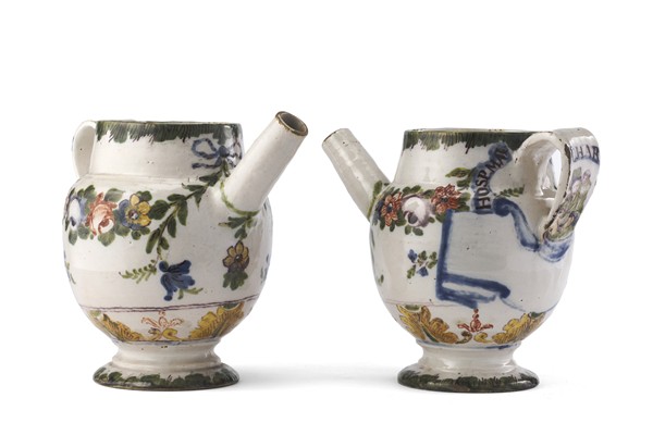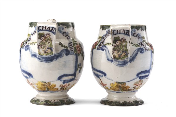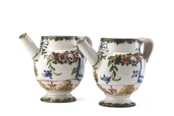 Manifattura di Felice Clerici, Milano, secolo XVIII. Coppia di orcioli da farma