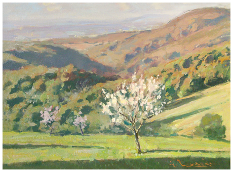 GIORGIO LUXARDO Livorno 1937 Primavera (Colline livornesi) Olio su tavola 30 x 40. Firma in b.a d.; sul verso titolo e firma.