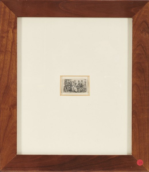 Hans Sebald Beham "Il buffone e gli amanti" bulino (mm 31x49 il foglio) in corni