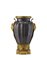 Base per lampada a vaso baccellato e smaltato a finto porfido, montatura e anse in bronzo dorato a mascherone, fascia a foglie lanceolate e base sagomata (h. cm 36) (difetti)