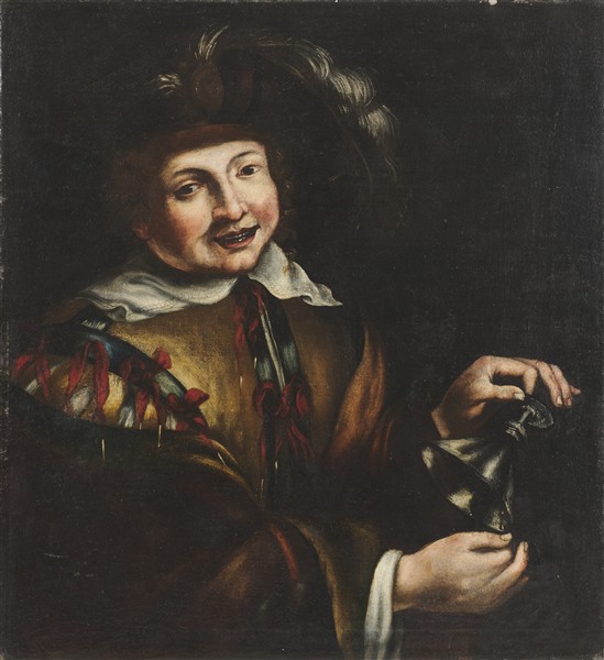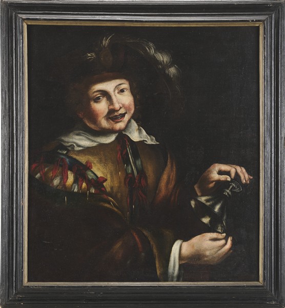 Scuola del secolo XVII "Ritratto virile con bicchiere" olio su tela (cm 71x64)