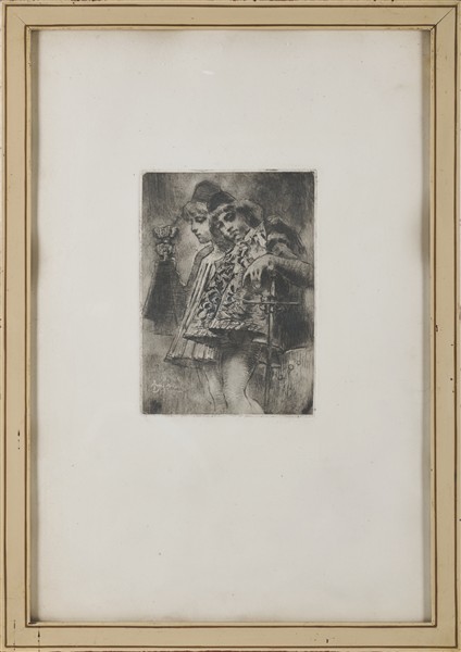 Luigi Conconi "Fanti di coppe e spade" acquaforte monotipata (mm 270x191 all'imp