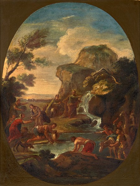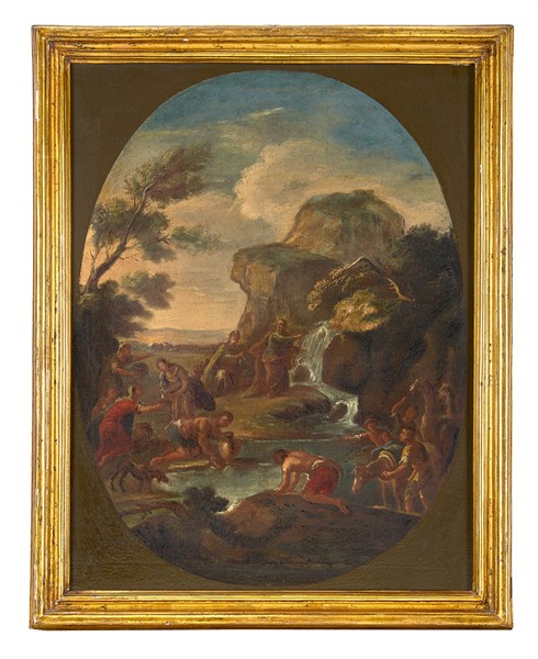 Coppia di dipinti raffiguranti "Davide e Golia" e "Mosè fa scaturire l'acqua dalla roccia"