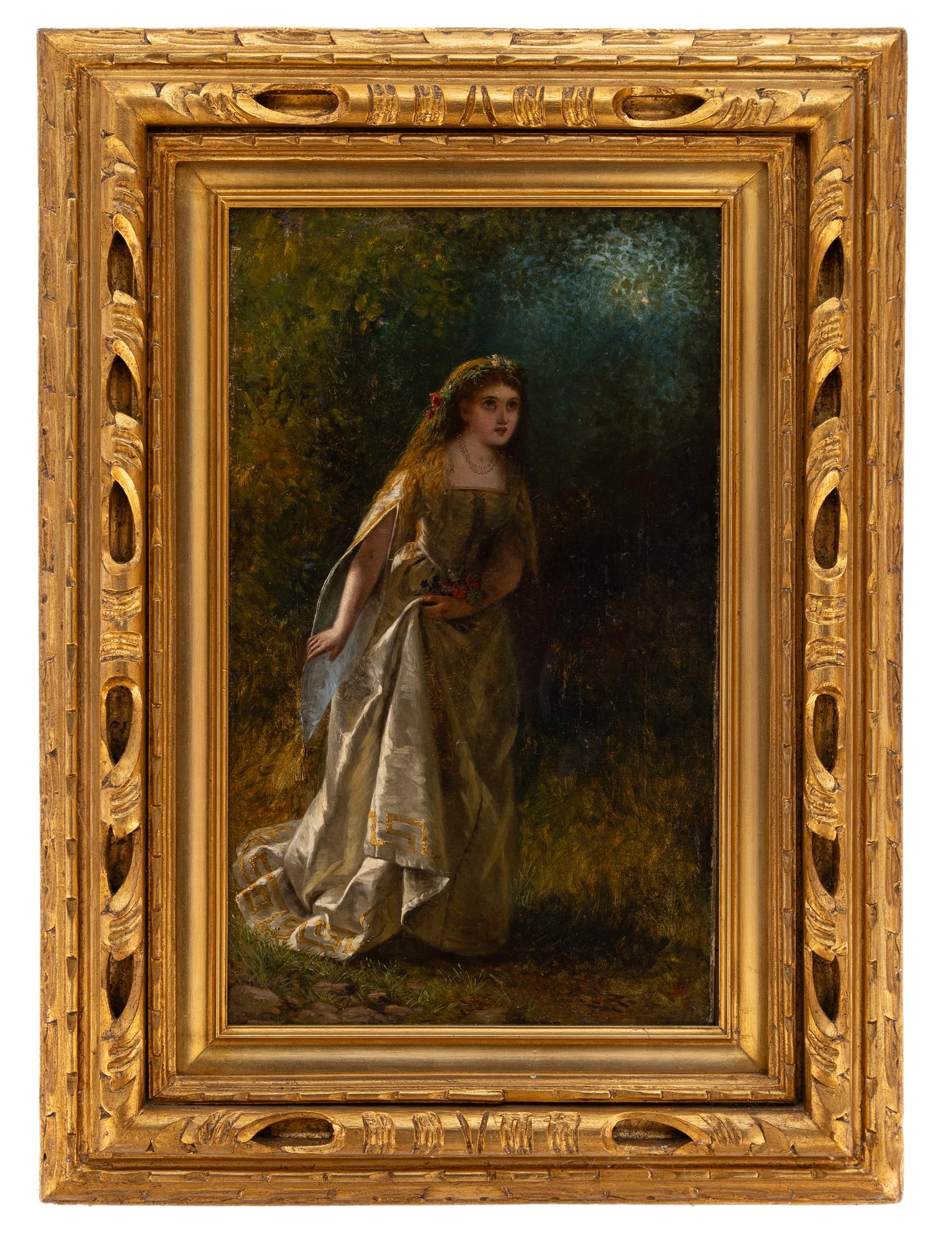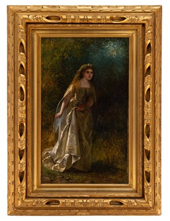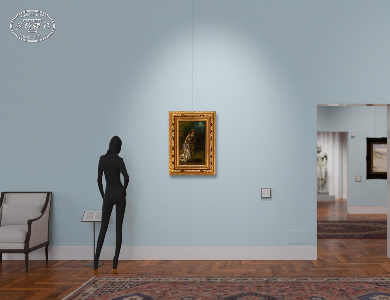 Anonimo del XIX Secolo - La Dama - Italia XIX Secolo - Olio su tela cm 61x35,5 Siglato in basso a dx N.B.