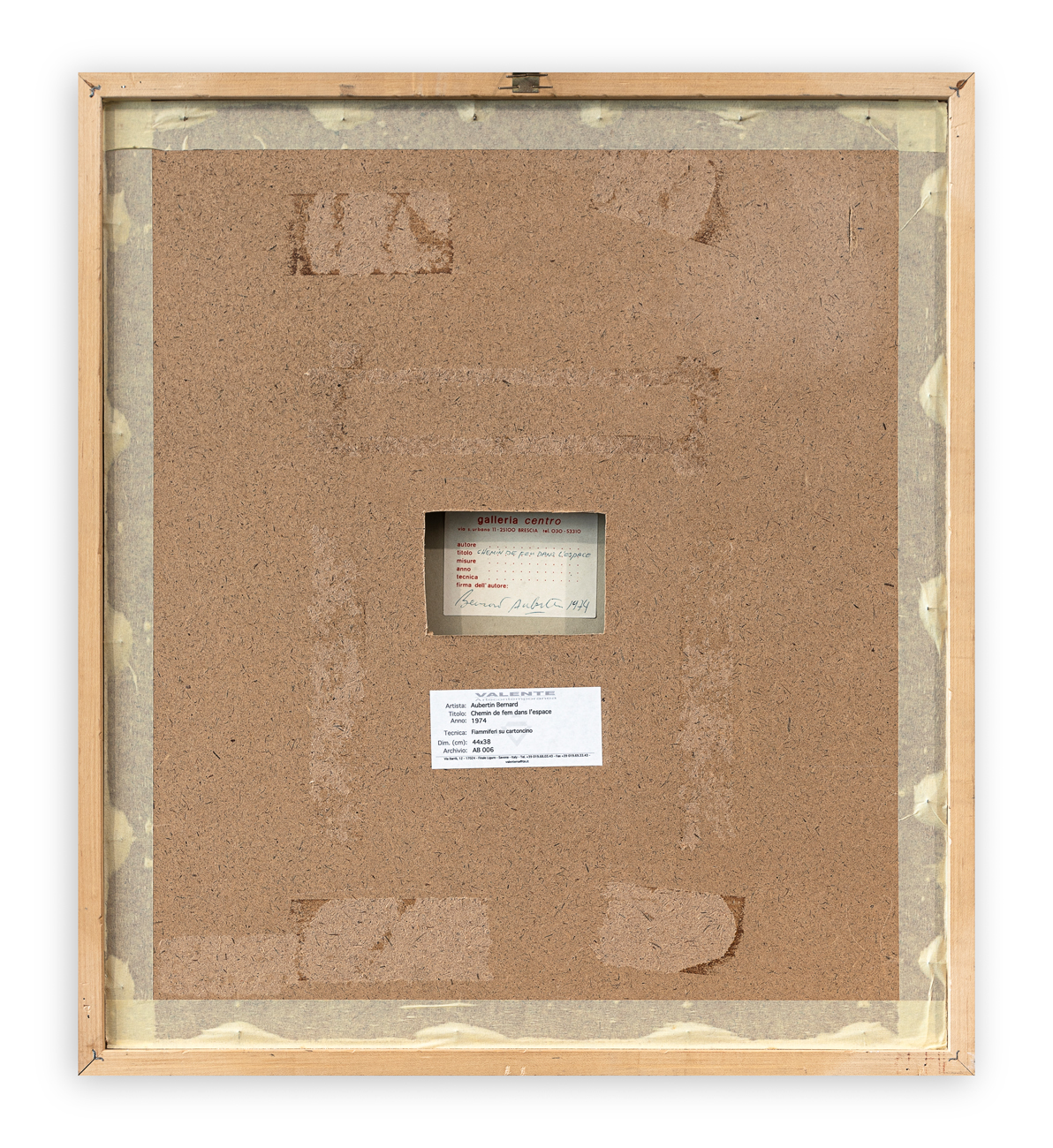 Etichetta della Galleria Valente Arte Contemporanea (SV) al retro