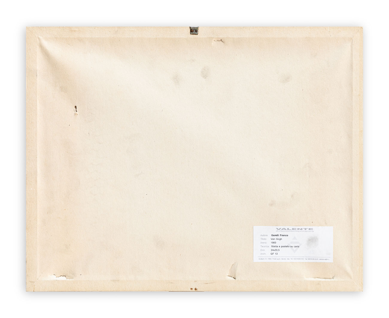 Etichetta della Galleria Valente Arte Contemporanea (SV) al retro