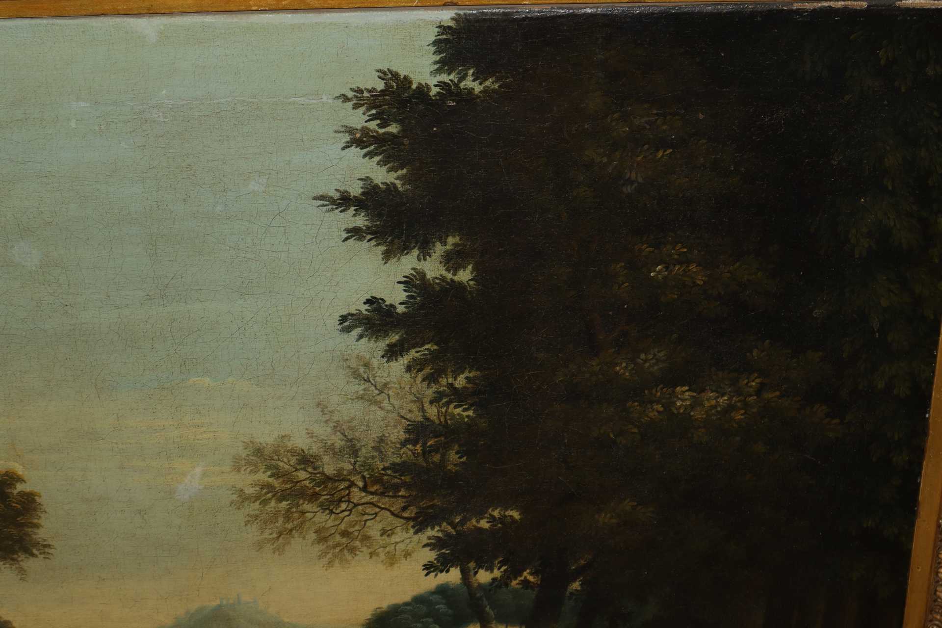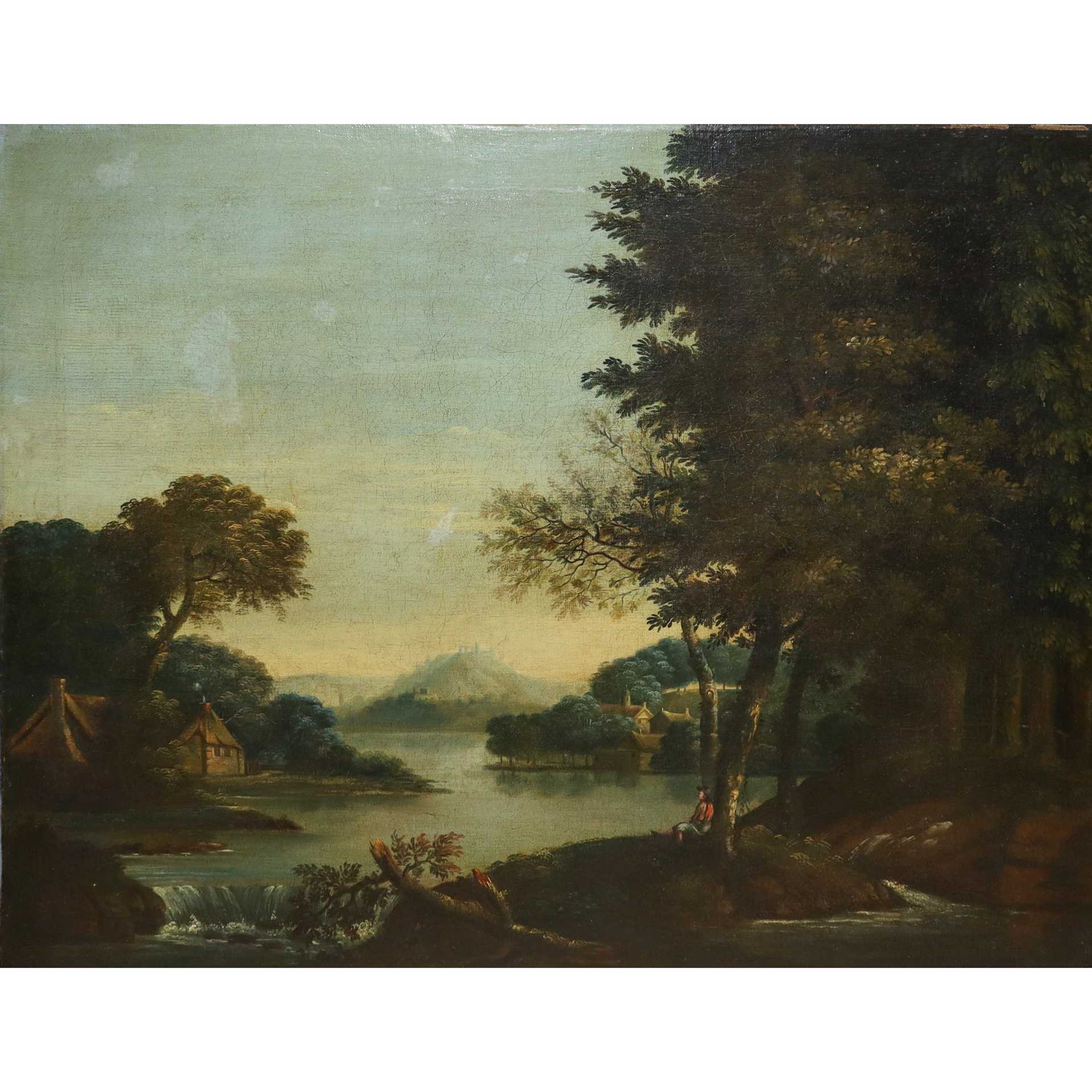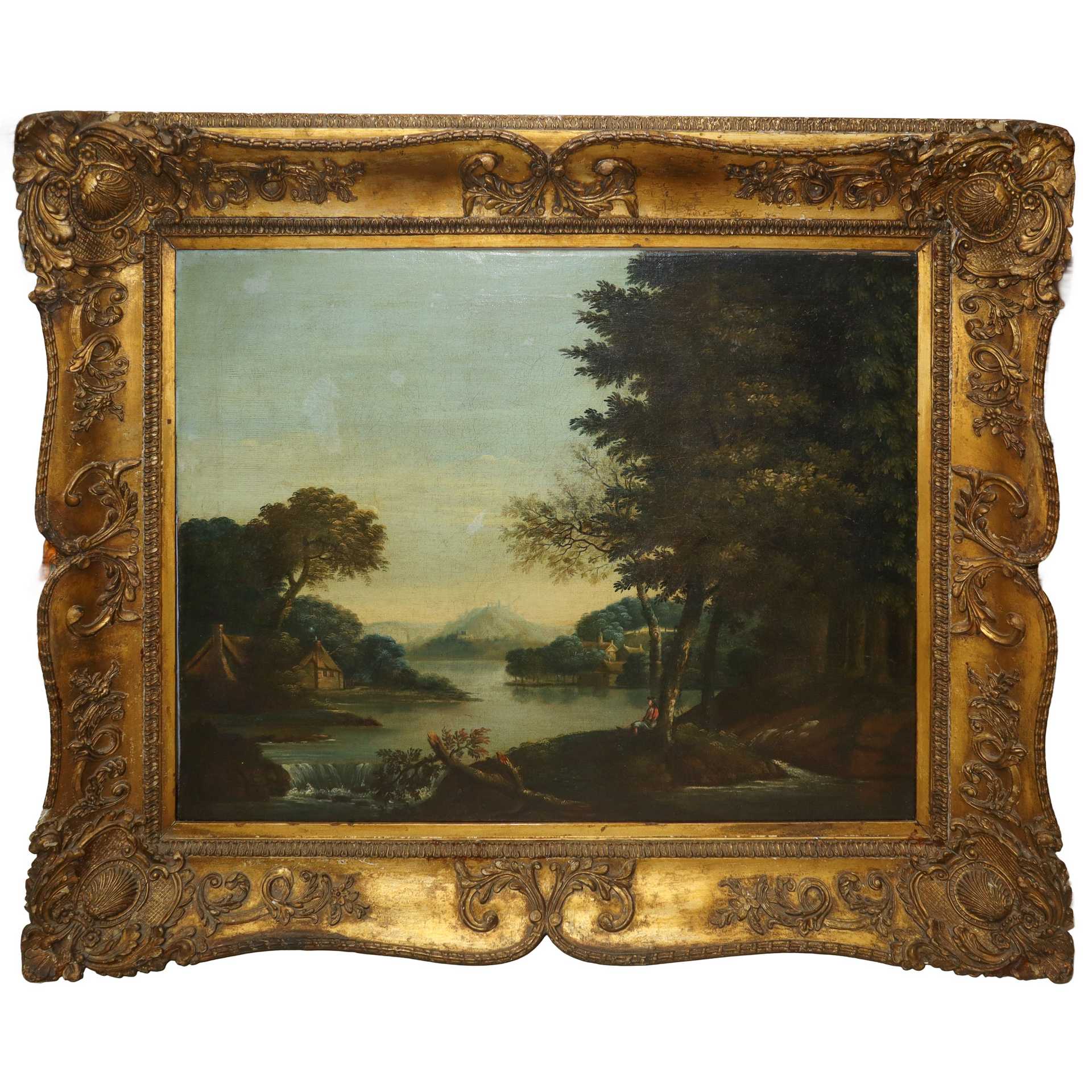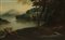 Paesaggio fluviale con alberi, Fine 19° secolo h cm 63X76 in cornice h cm 85X98 Olio su tela