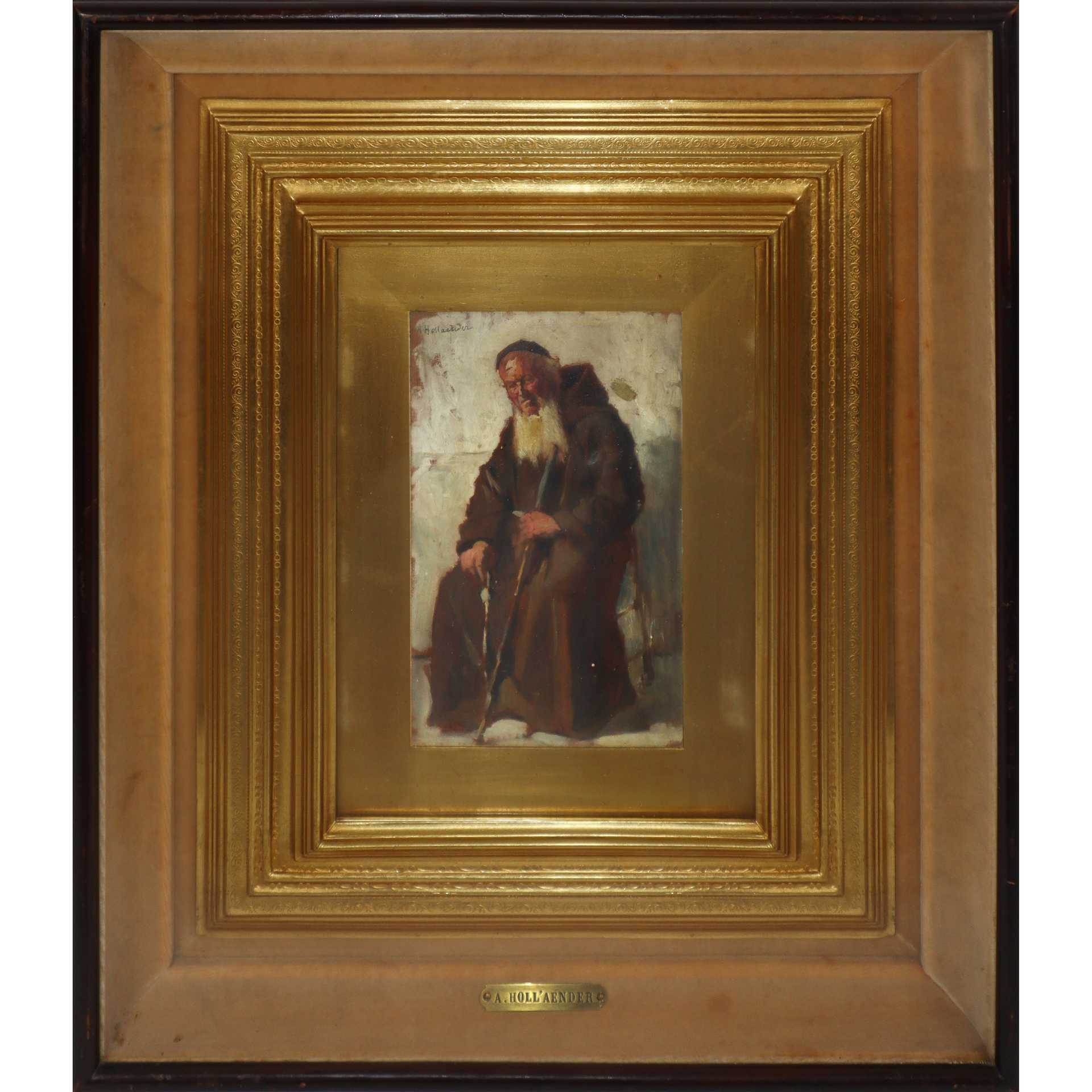Alfonso Hollaender (Ratisbona 1845-Firenze 1923) - Fra Pietro Cappuccino h cm 25X18 in cornice h cm 47X40 Firmato in alto a sinistra. Titolato sul retro Firmato in alto a sinistra. Titolato sul retro