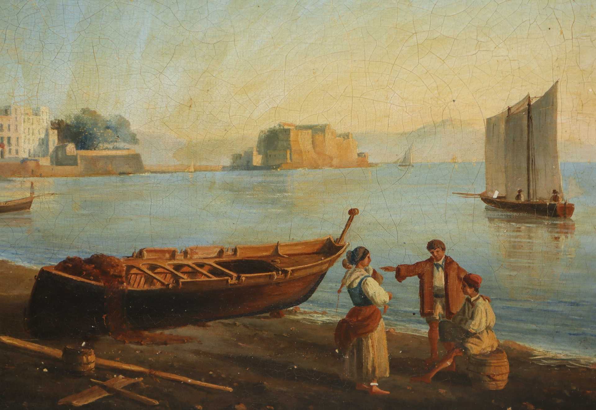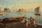 Marina di Napoli con castello, barche e personaggi, 19° secolo