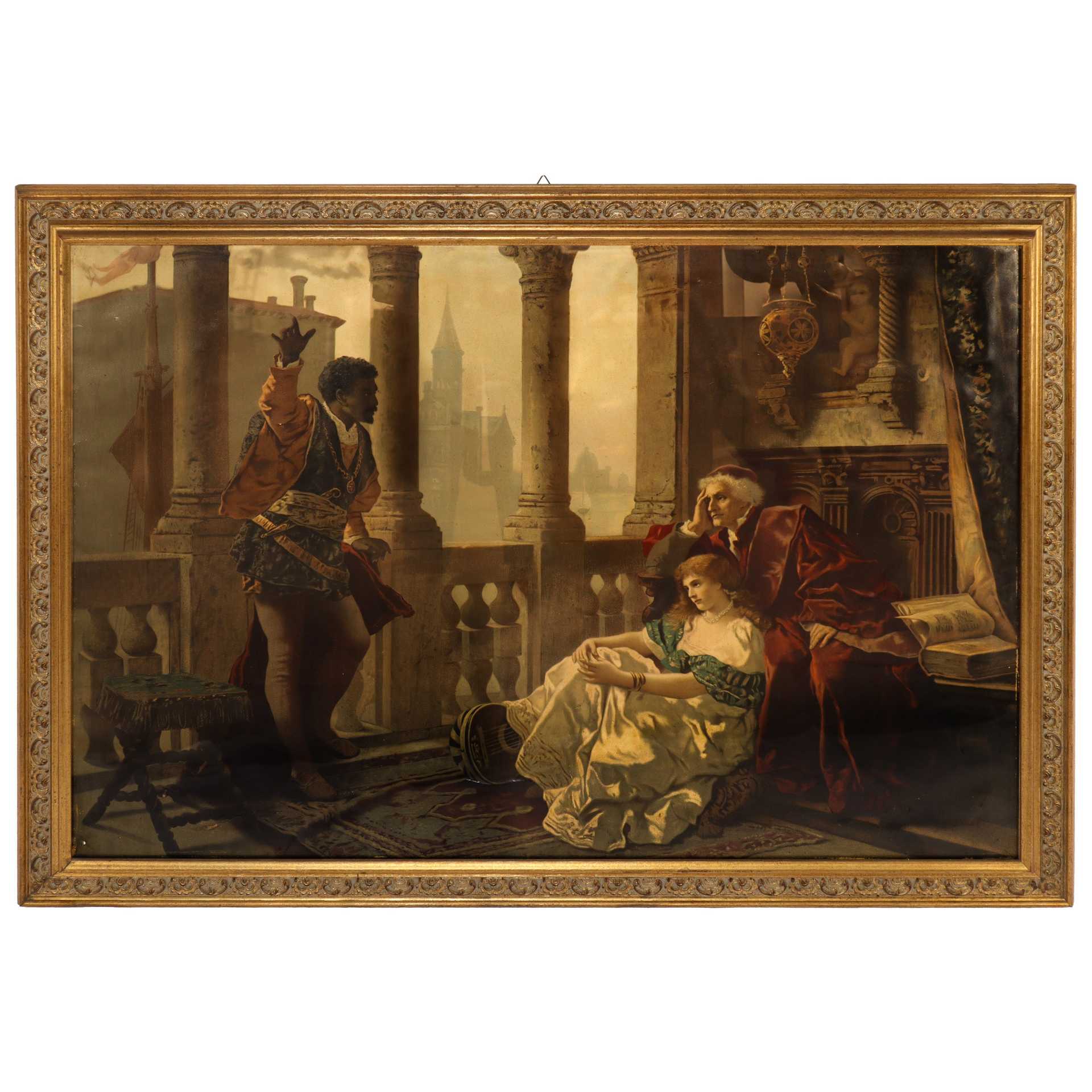 Otello che relaziona le sue avventure a Desdemona, Oleografia su tela, copia da Becker Carl Ludvwig Friedrich 70 x 100, in cornice 82 x 112 Oleografia su tela