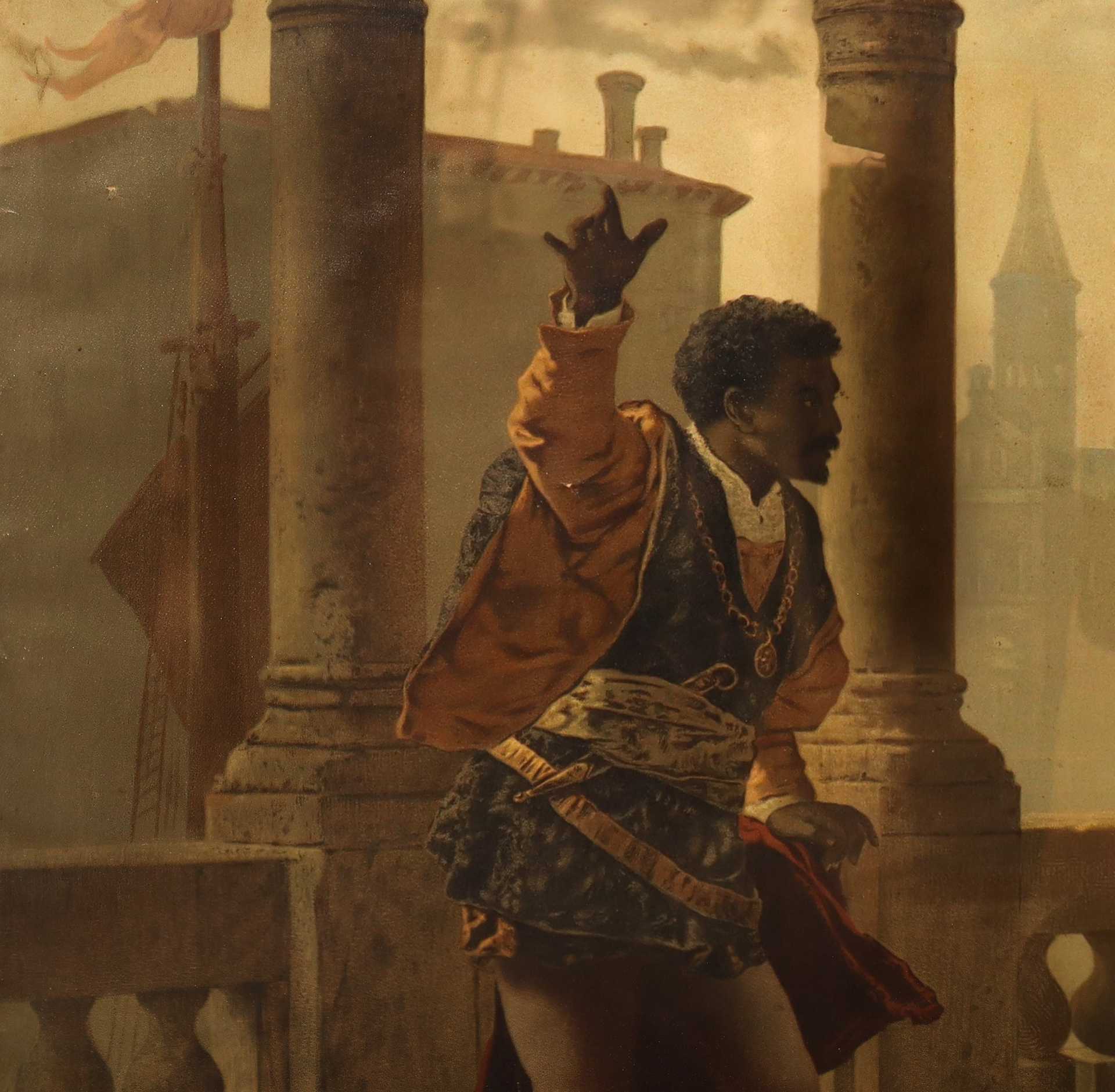 Otello che relaziona le sue avventure a Desdemona, Oleografia su tela, copia da Becker Carl Ludvwig Friedrich