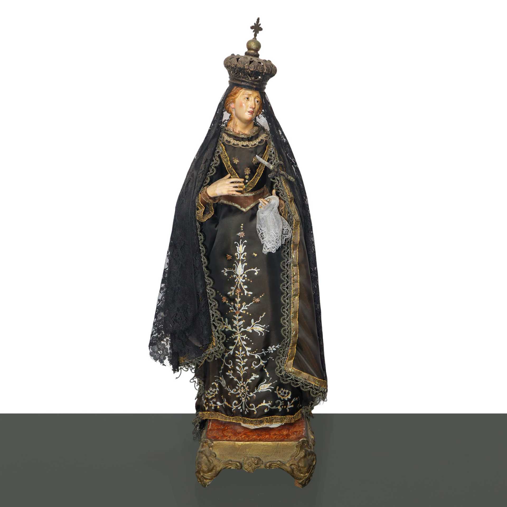 Madonna Addolorata con viso mani e piedi in terracotta policroma, Puglia 19° secolo