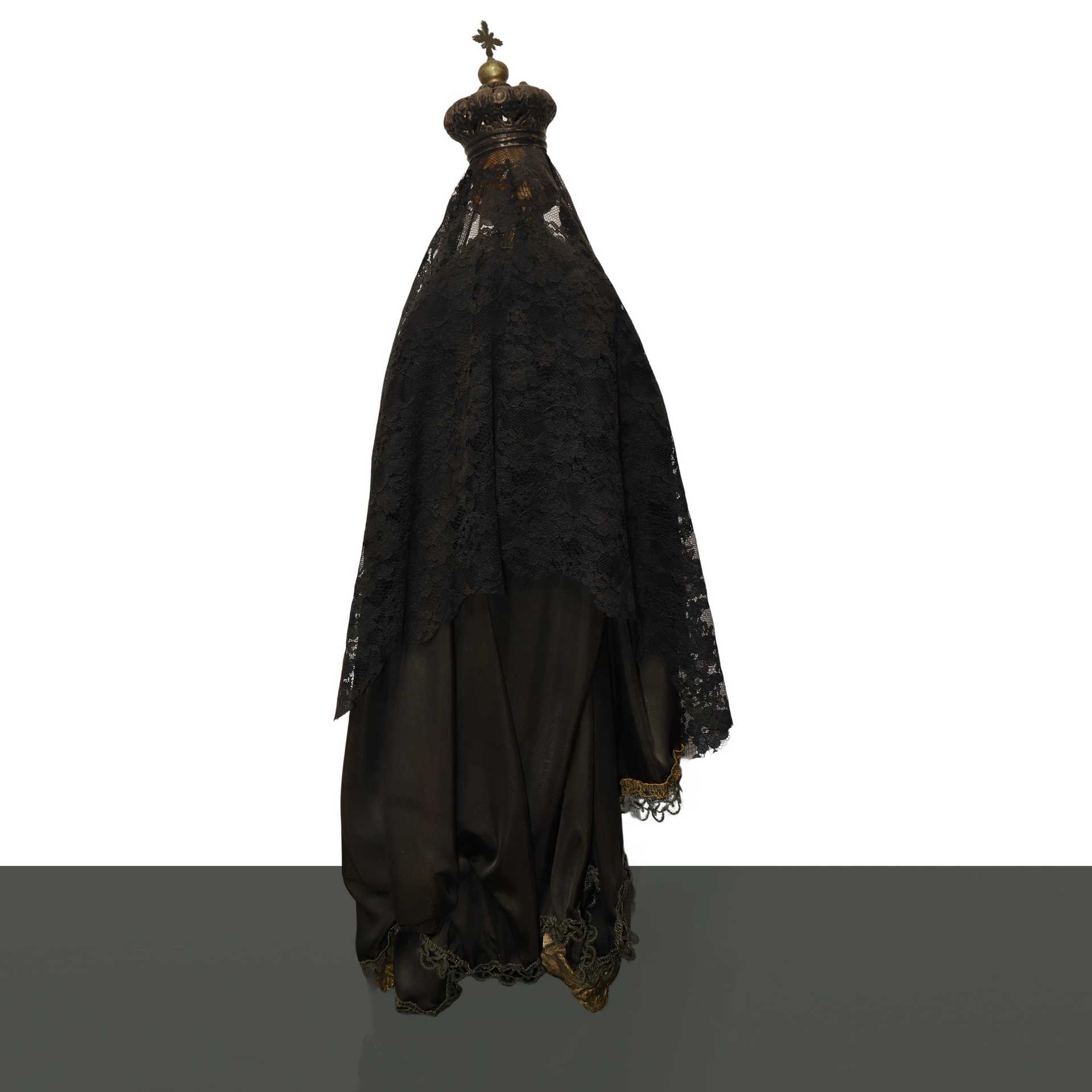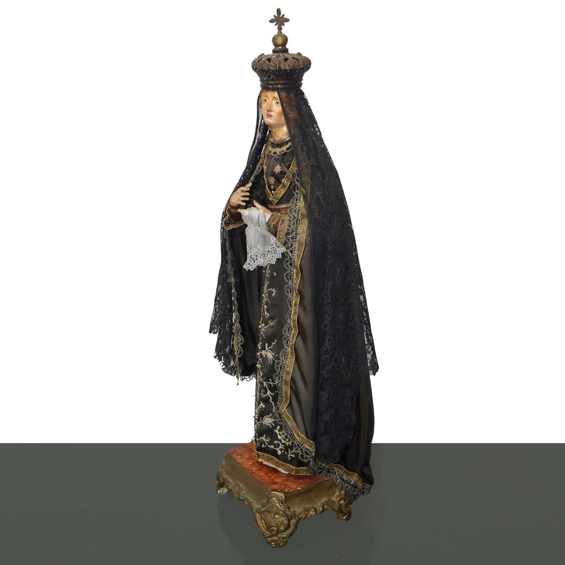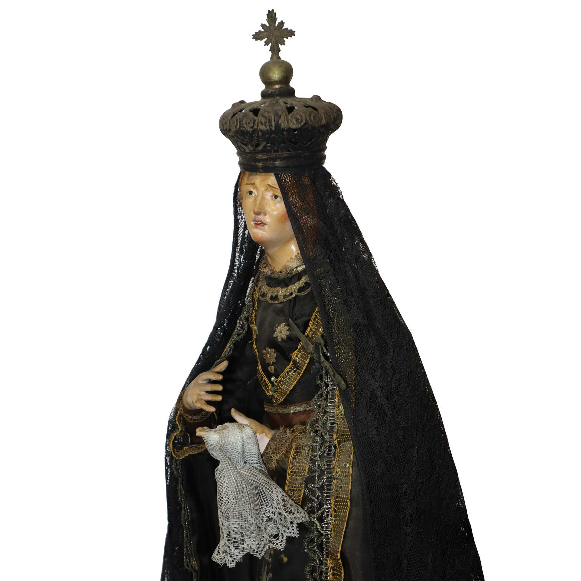 Madonna Addolorata con viso mani e piedi in terracotta policroma, Puglia 19° secolo h cm 71X20X15