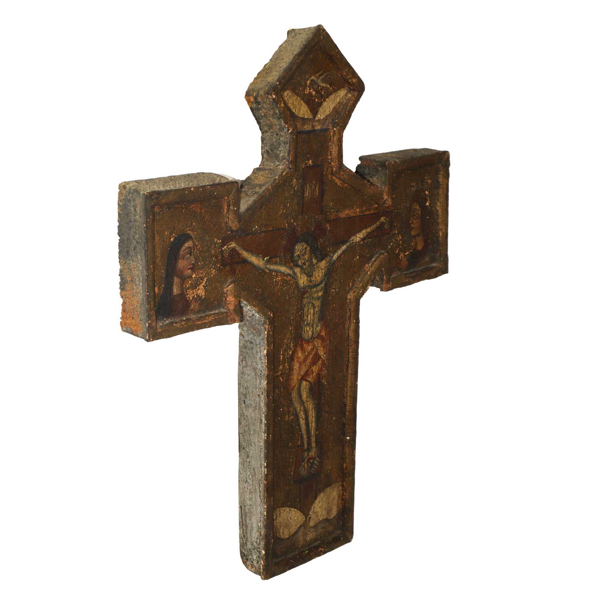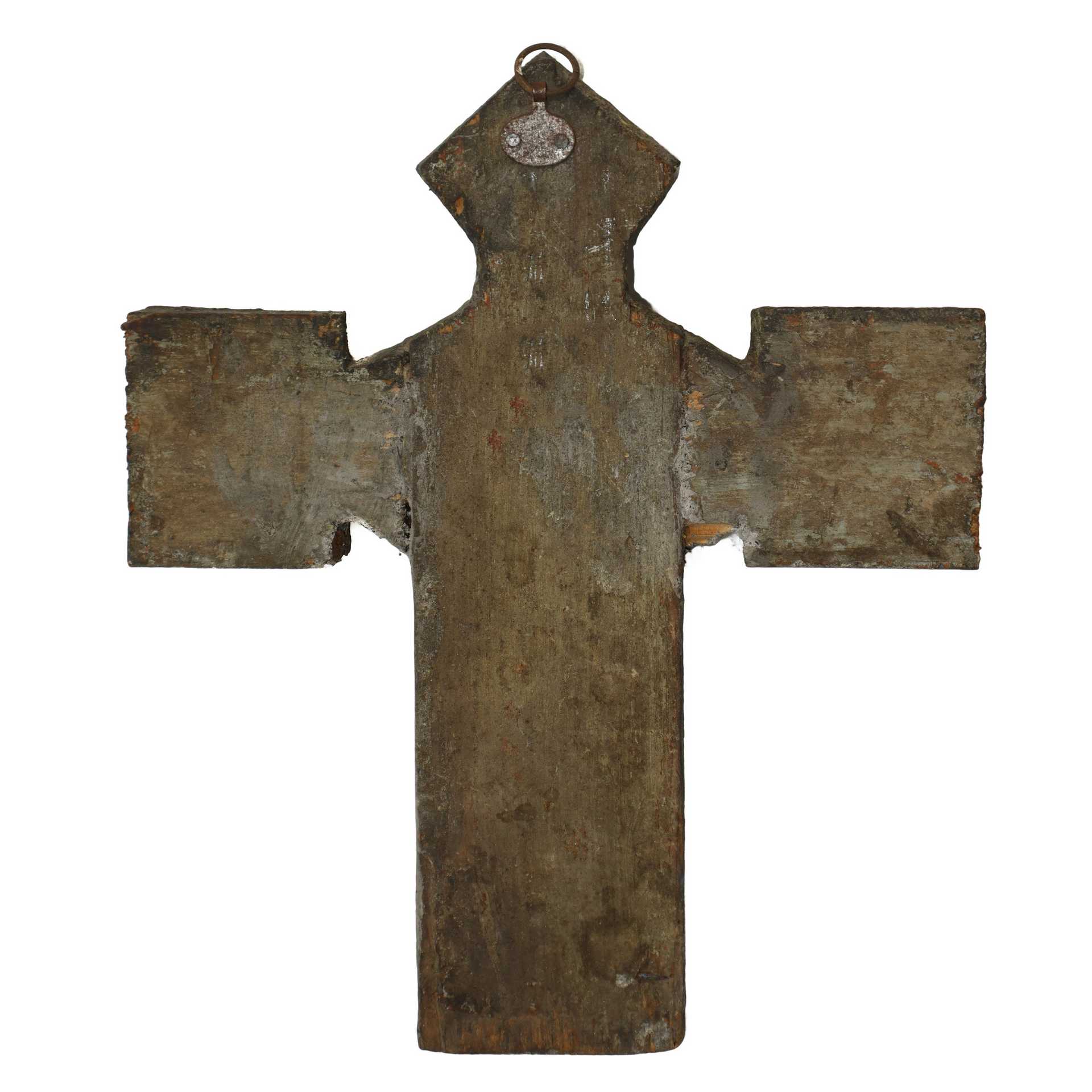 Antico crocifisso in legno di abete dipinto a tempera, 19° secolo h cm 46X36X3 Tempera su legno d'abete