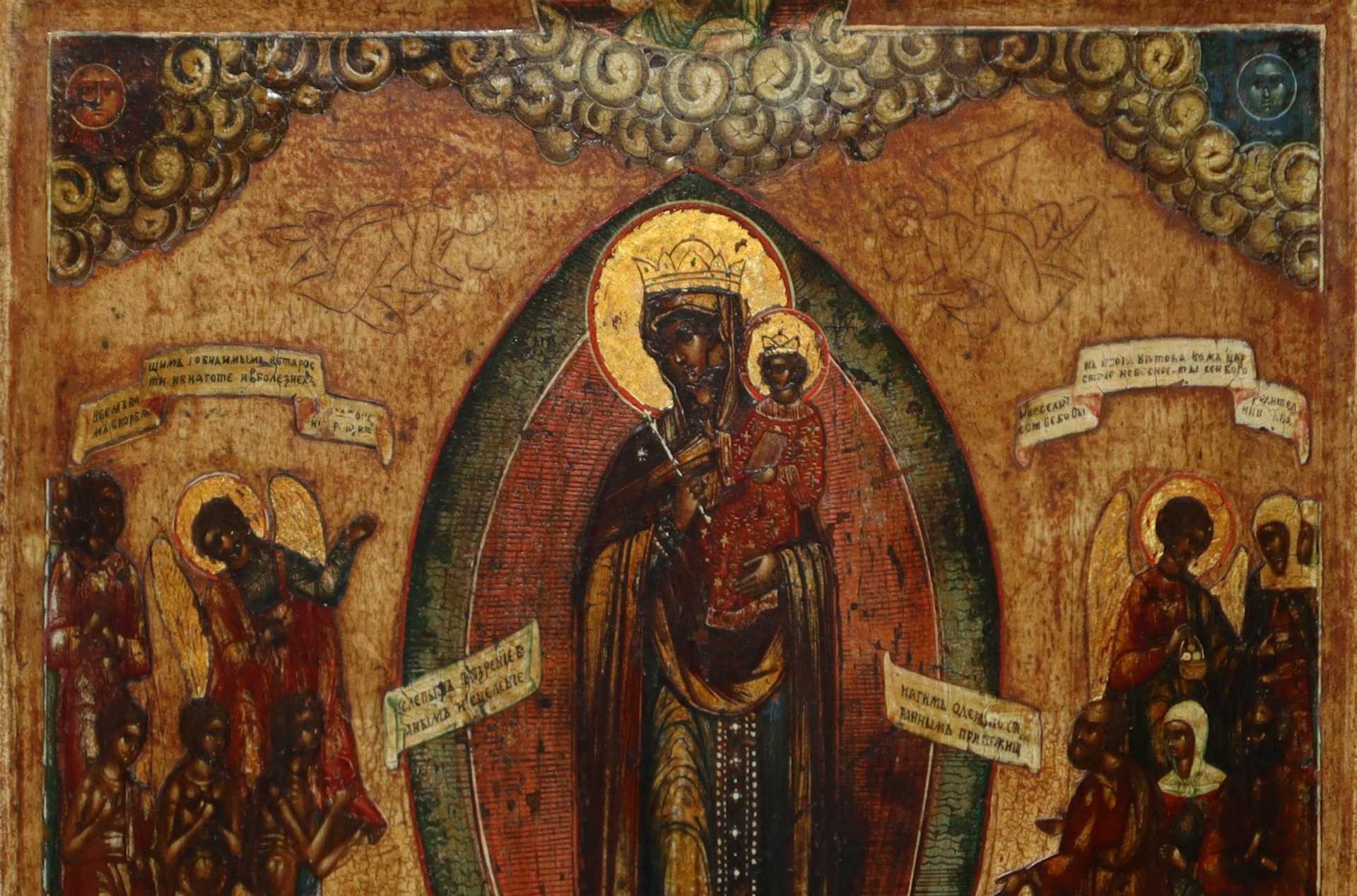 Icona russa raffigurante Madonna degli afflitti con bambino in braccio, Fine 18° secolo