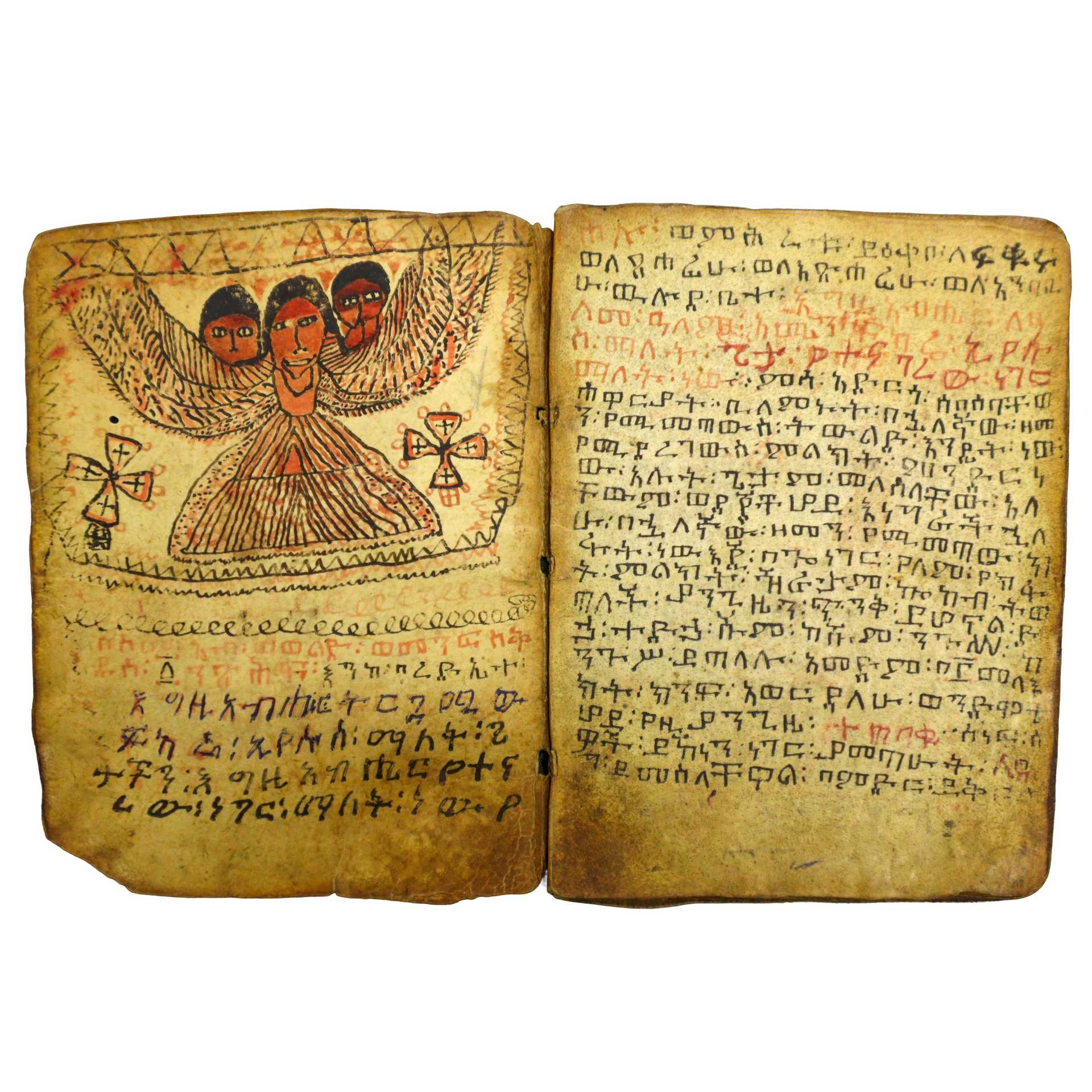 Antichissimo piccolo libro di carattere religioso in pergamena manoscritto in lingua copto ge'ez etiopica