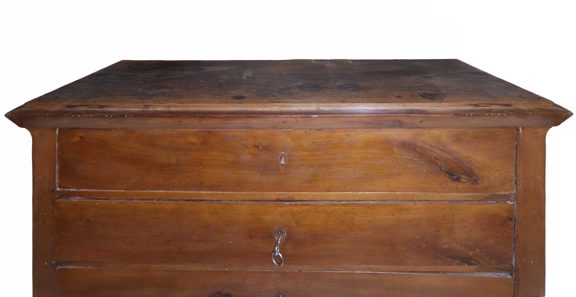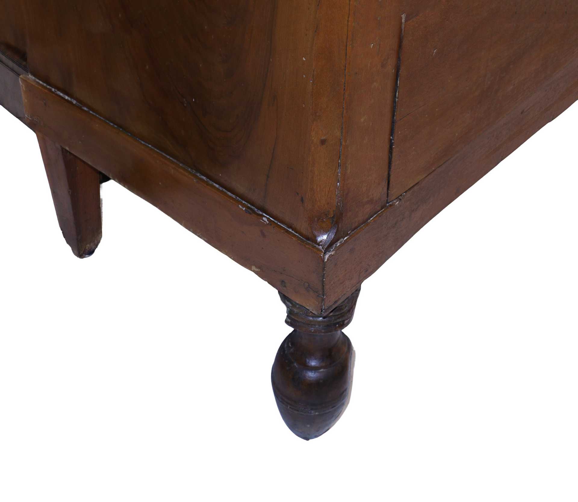 Cassettone in legno di noce 4 cassetti con piedi anteriori a pigna e posteriori troncopiramidali ed angoli smussati, Sicily 1st quarter 19° secolo h cm 131X125X52