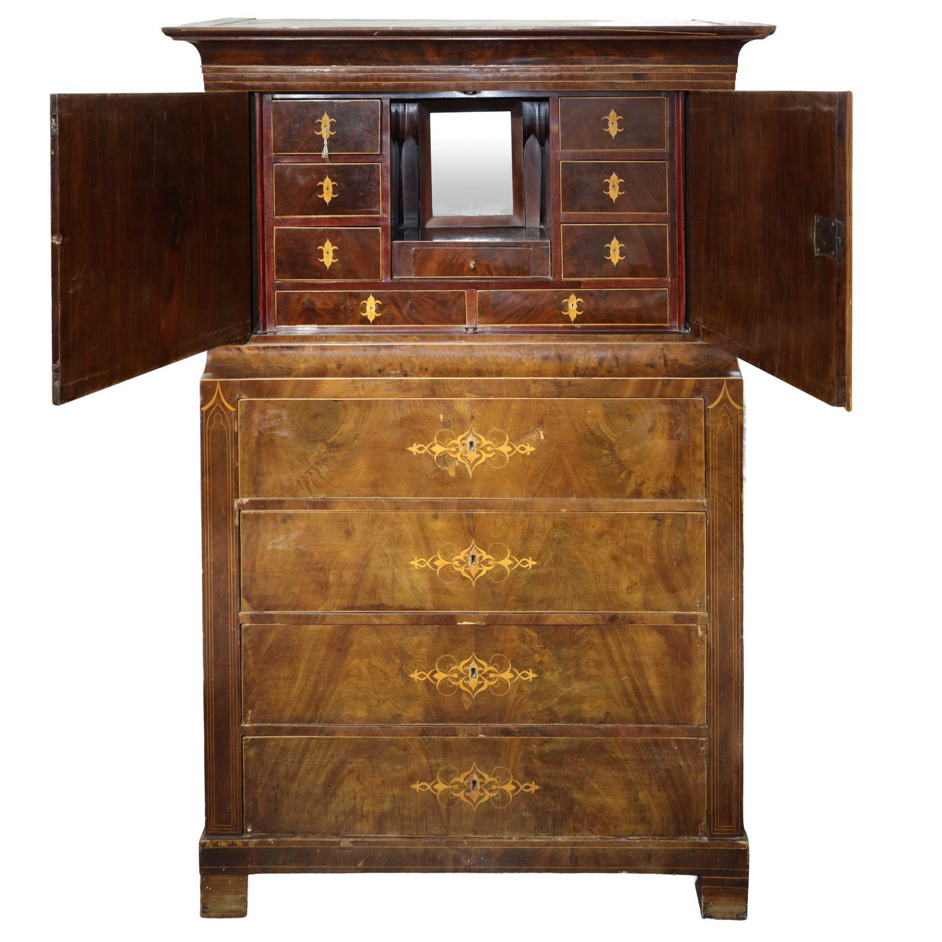 Lot 125 | Chiffonier in legno di mogano con intarsi sul fronte e filettata ai lati, Sicily 19° secolo