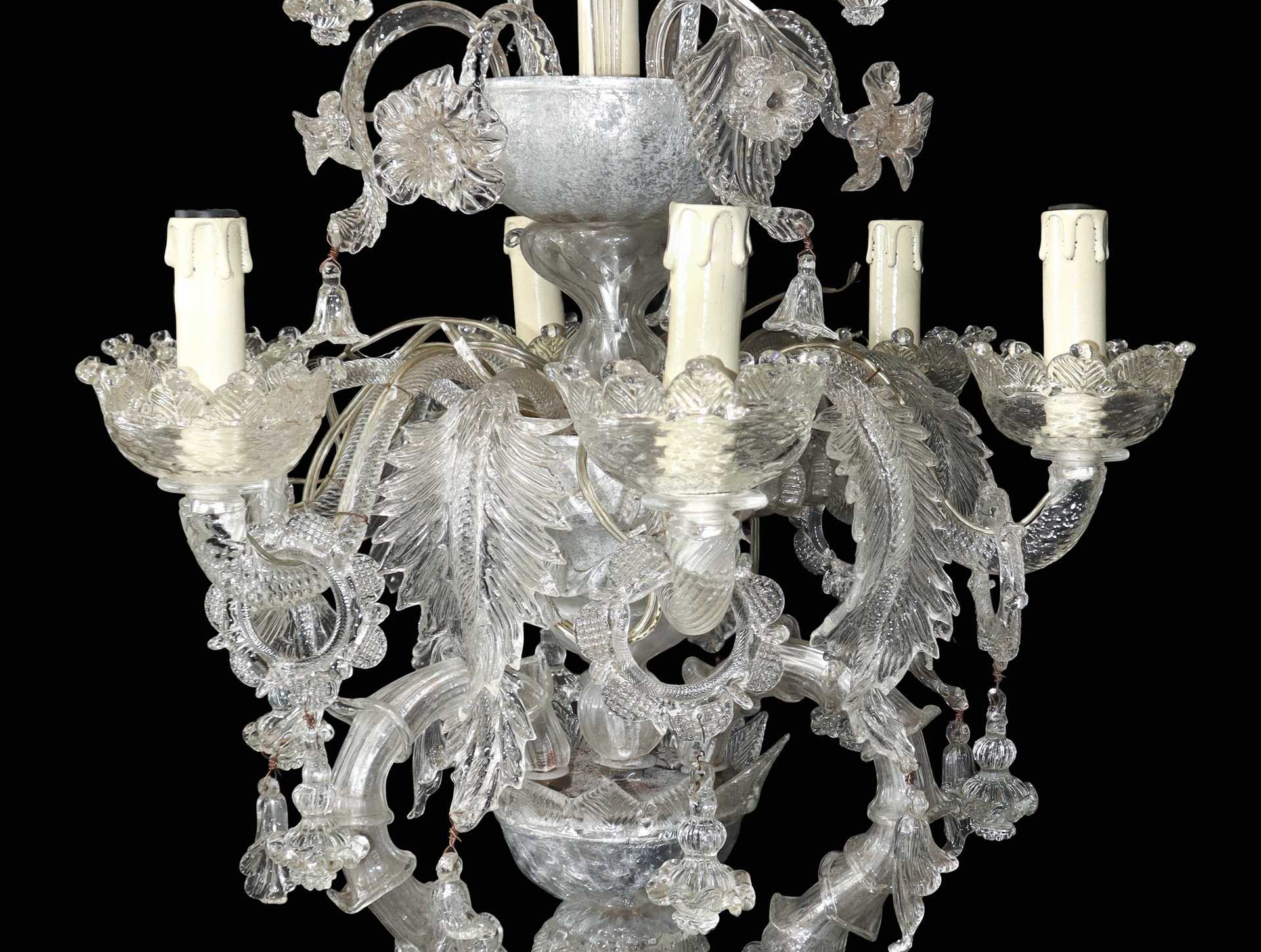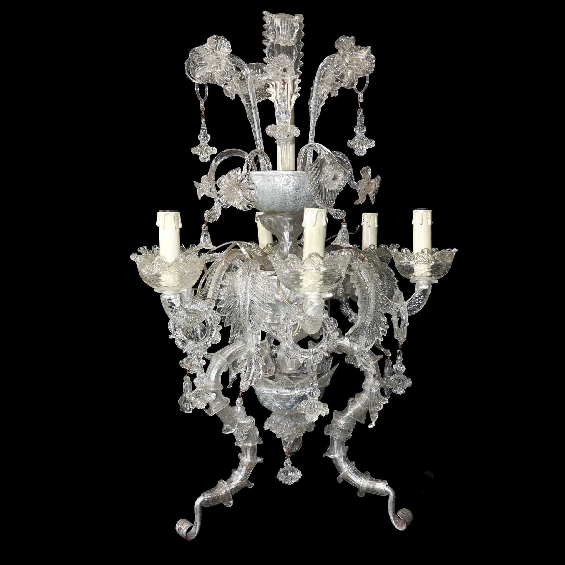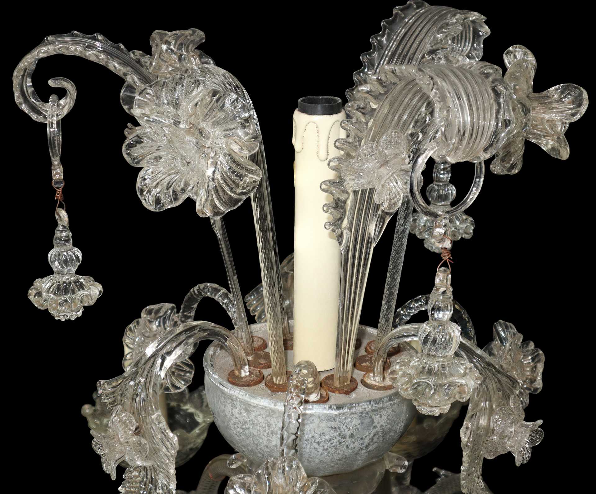 Flambeau in vetro di Murano carezzonico bianco a 7 fiamme con base a tre razze , Fine 19° secolo
