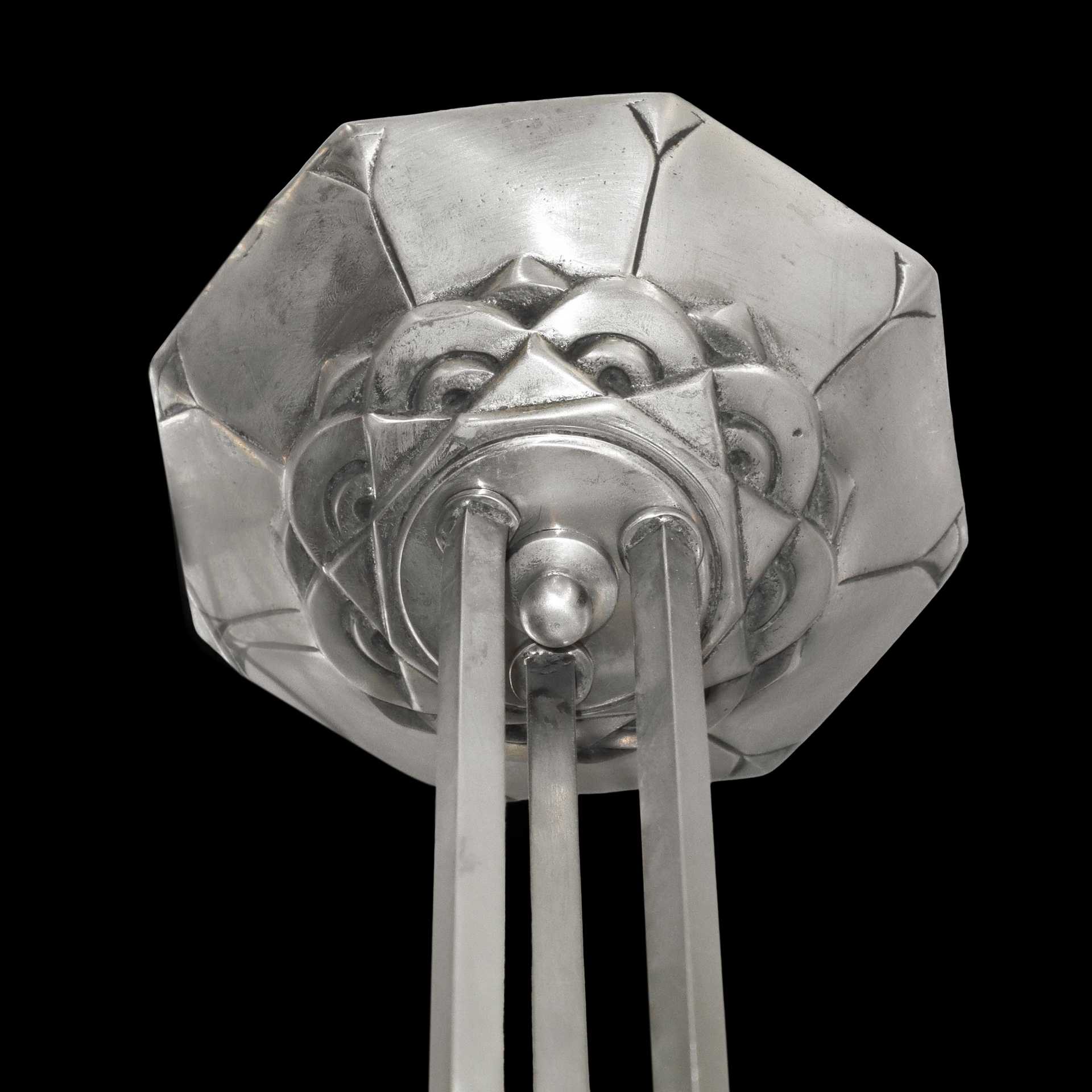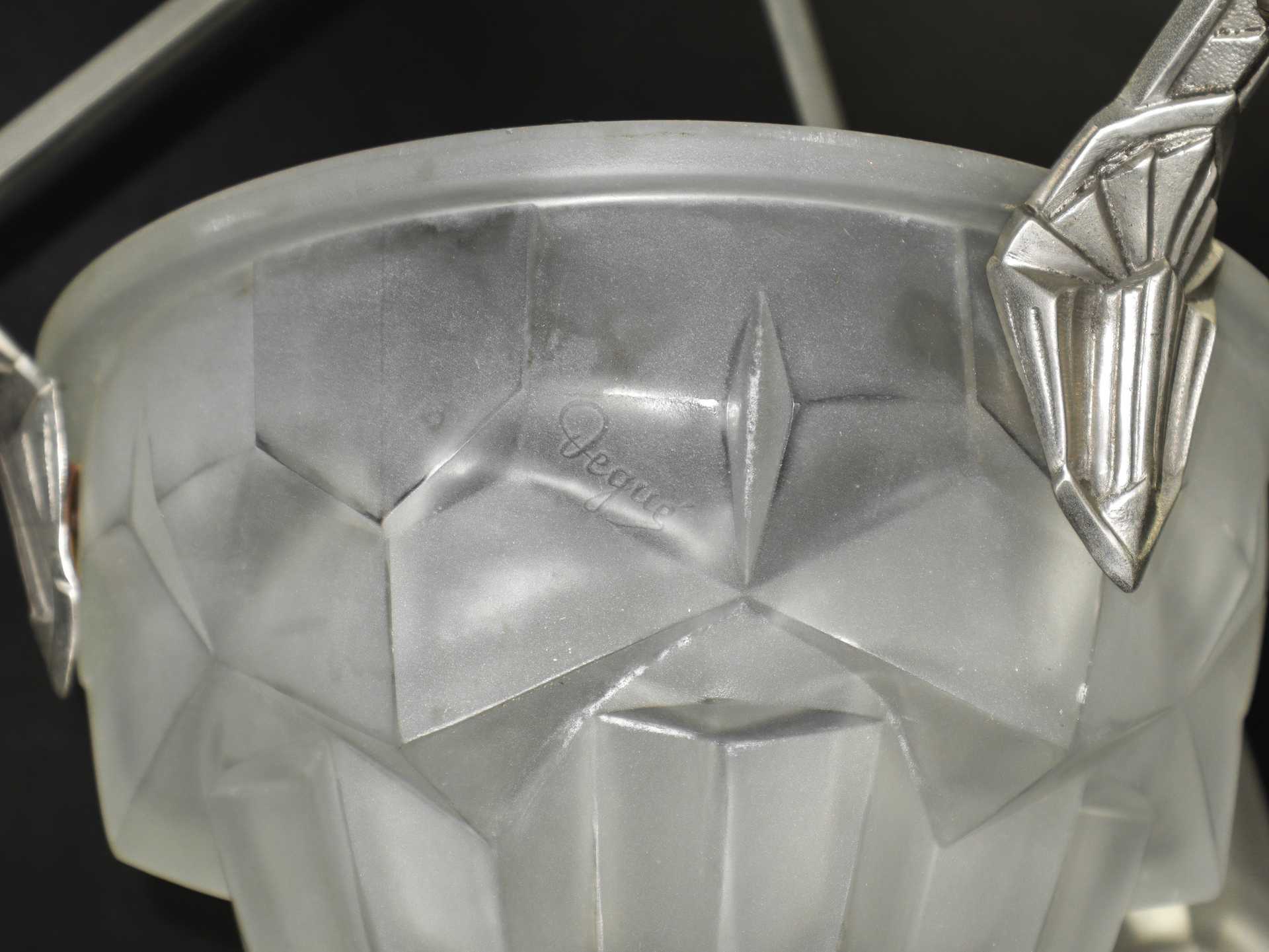Lot 138 | David Gueron Degue & A. Petitot - Lampadario a sospensione Art Decò francese, in vetro sabbiato con geometrie, 1930s