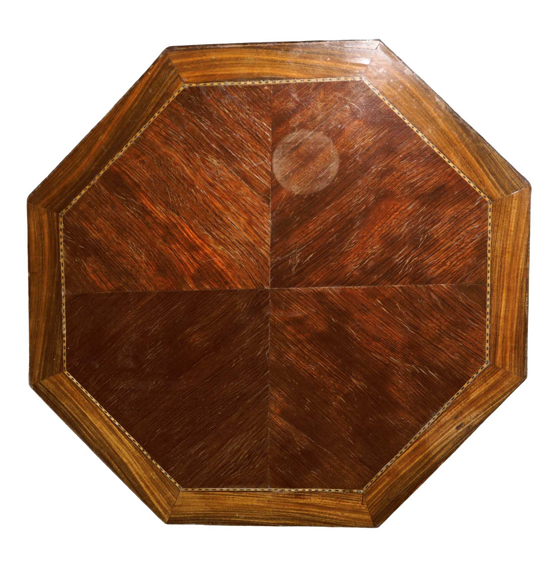 Tavolo ottagonale con piano filettato in noce chiara , Napoleon III 1860