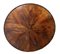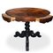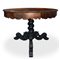 Tavolo rotondo con piano dentellato al bordo piede a tre razze scolpito e intagliato in legno di palissandro