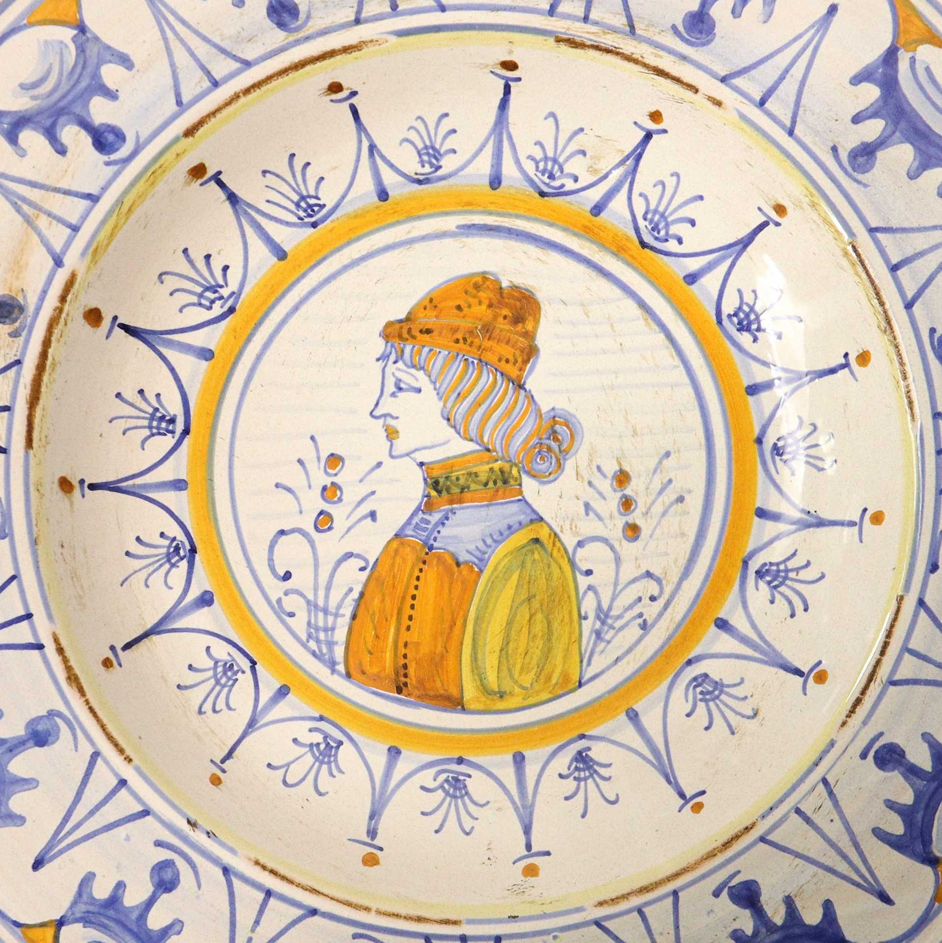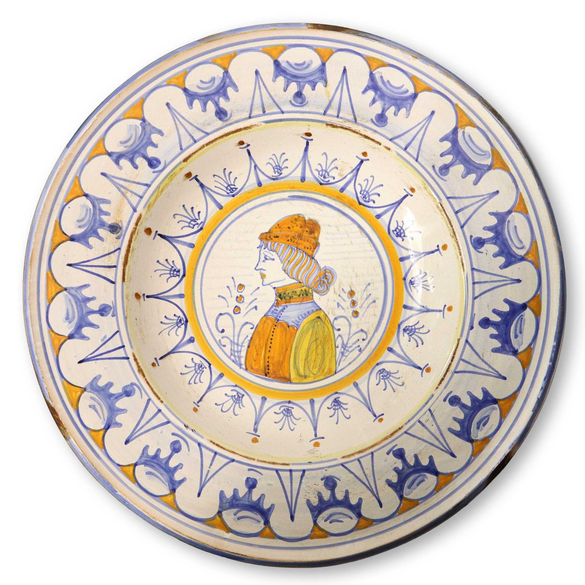 Lot 246 | Deruta - Piatto con personaggio in vesti medievali al centro, Primi 20° secolo