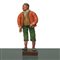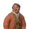 Personaggio presepiale in terracotta e legno con vesti in cotone, raso e passamaneria: uomo con giacca arancione e pantaloni verdi, Naples 19° secolo