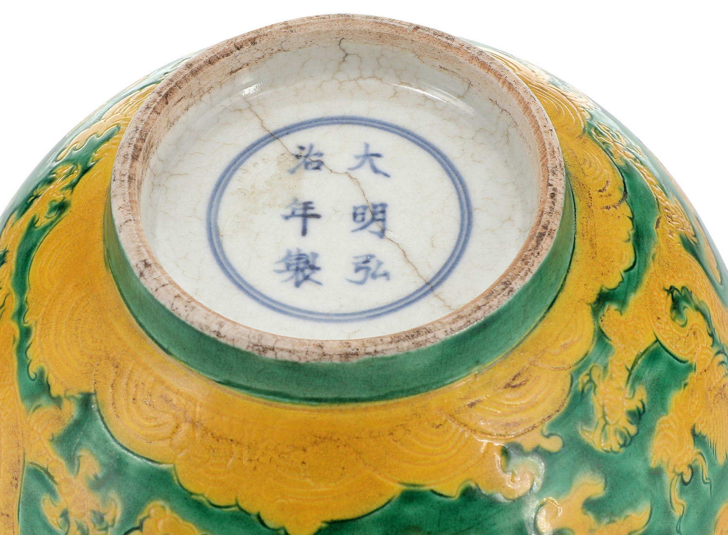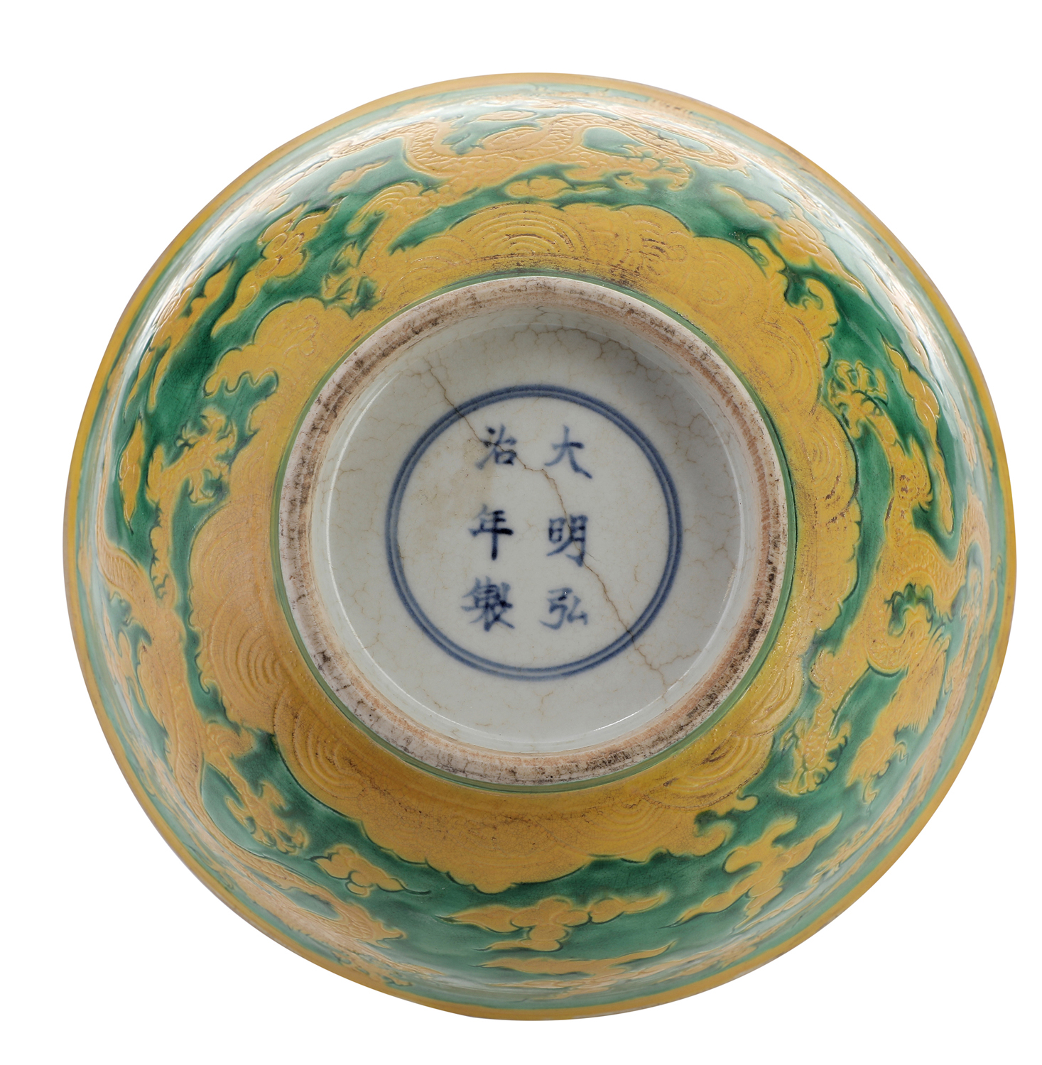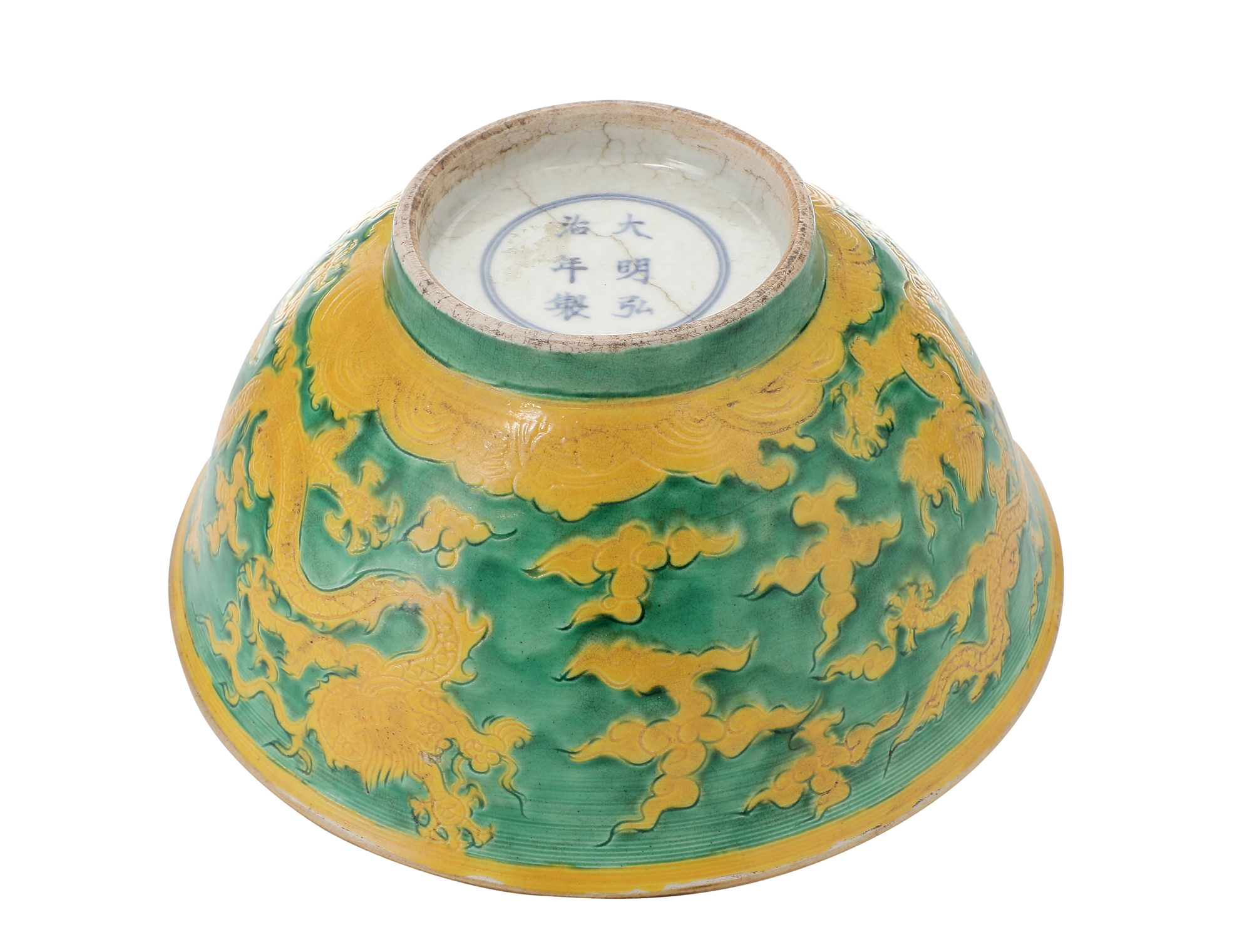 Cina. Dinastia Ming. Regno Hongzhi (1488 - 1505), (?) Ciotola con decoro di draghi tra nuvole e onde marine