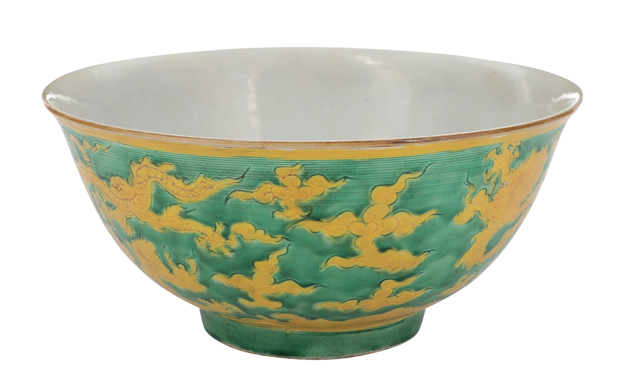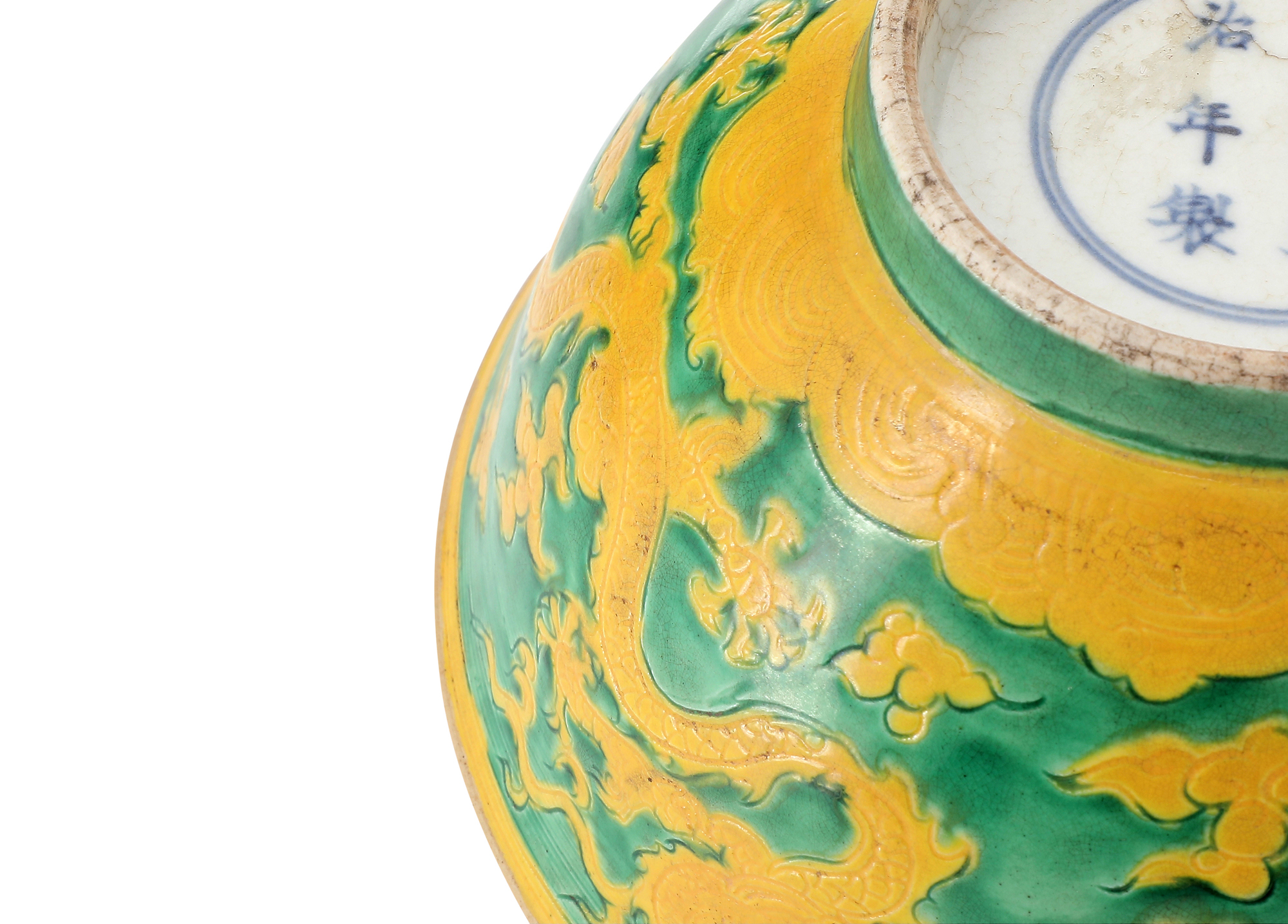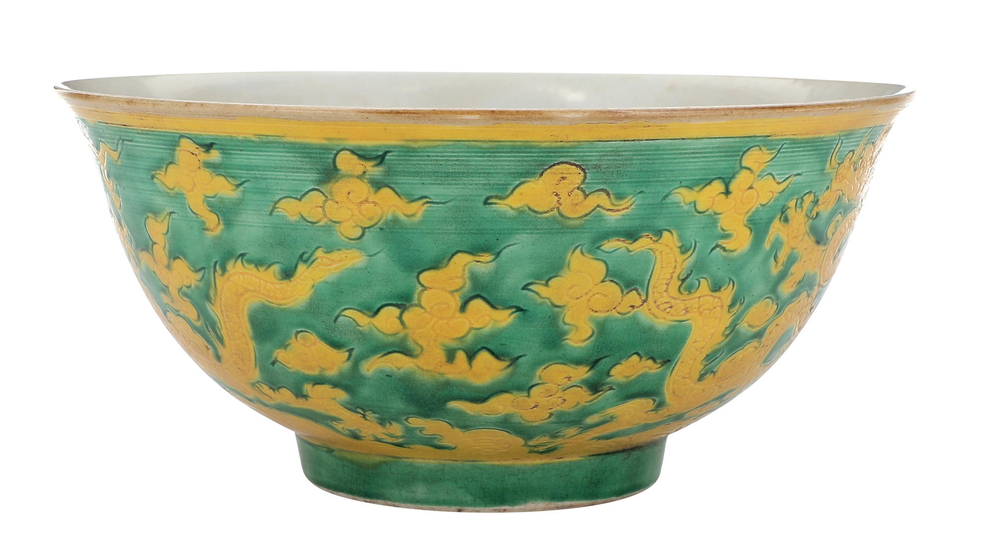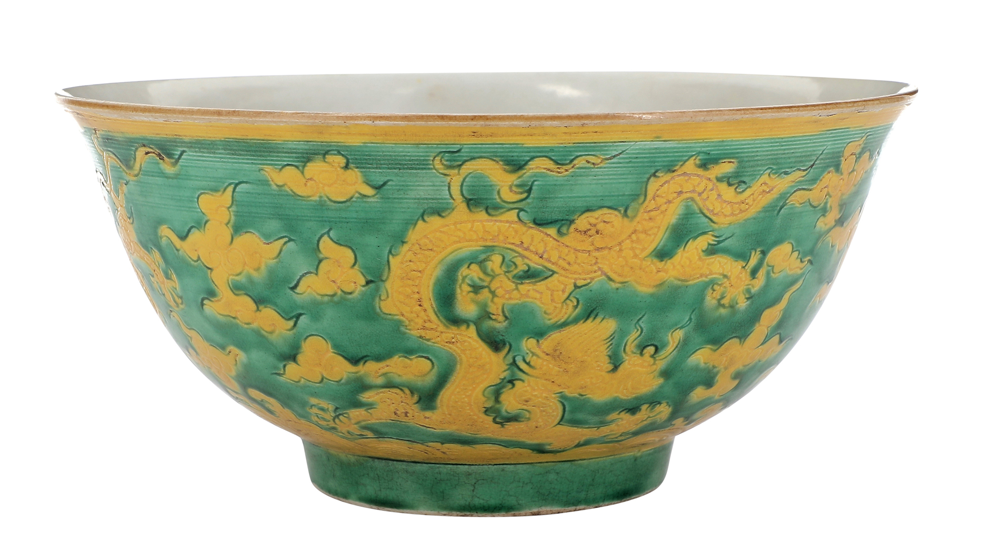 Cina. Dinastia Ming. Regno Hongzhi (1488 - 1505), (?) Ciotola con decoro di draghi tra nuvole e onde marine