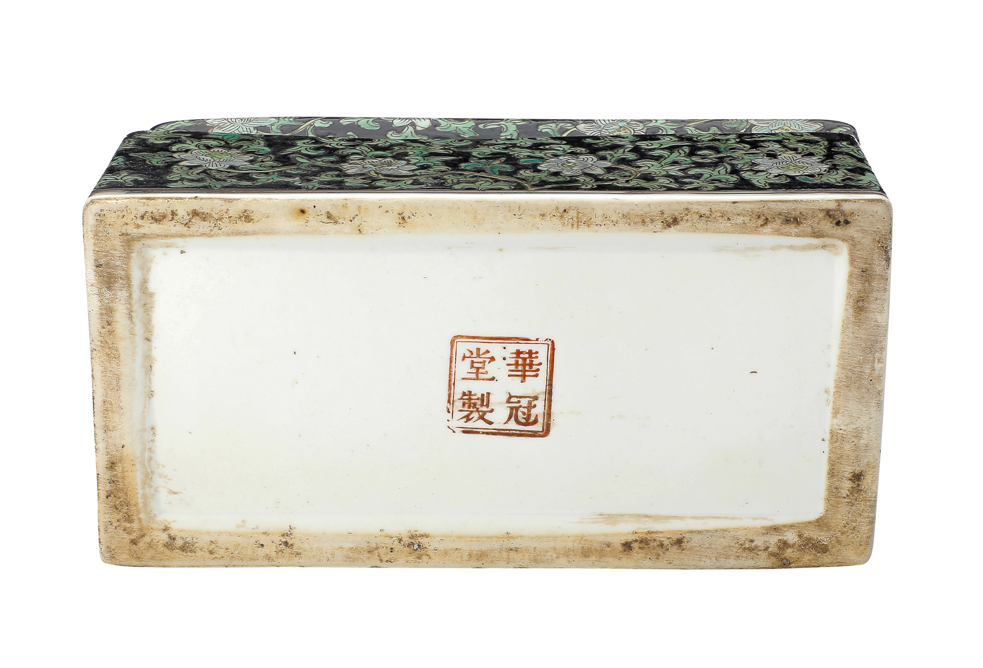 Cina. XX secolo Cofanetto con coperchio con decoro di drago tra fiori di loto