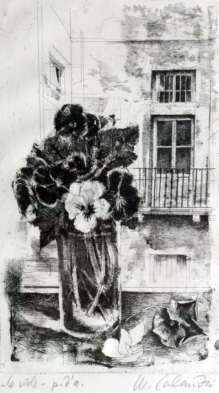 CALANDRI MARIO Torino 1914 - 1993 "Le viole" 1980 53x36,5 foglio, 32,3x19,1...