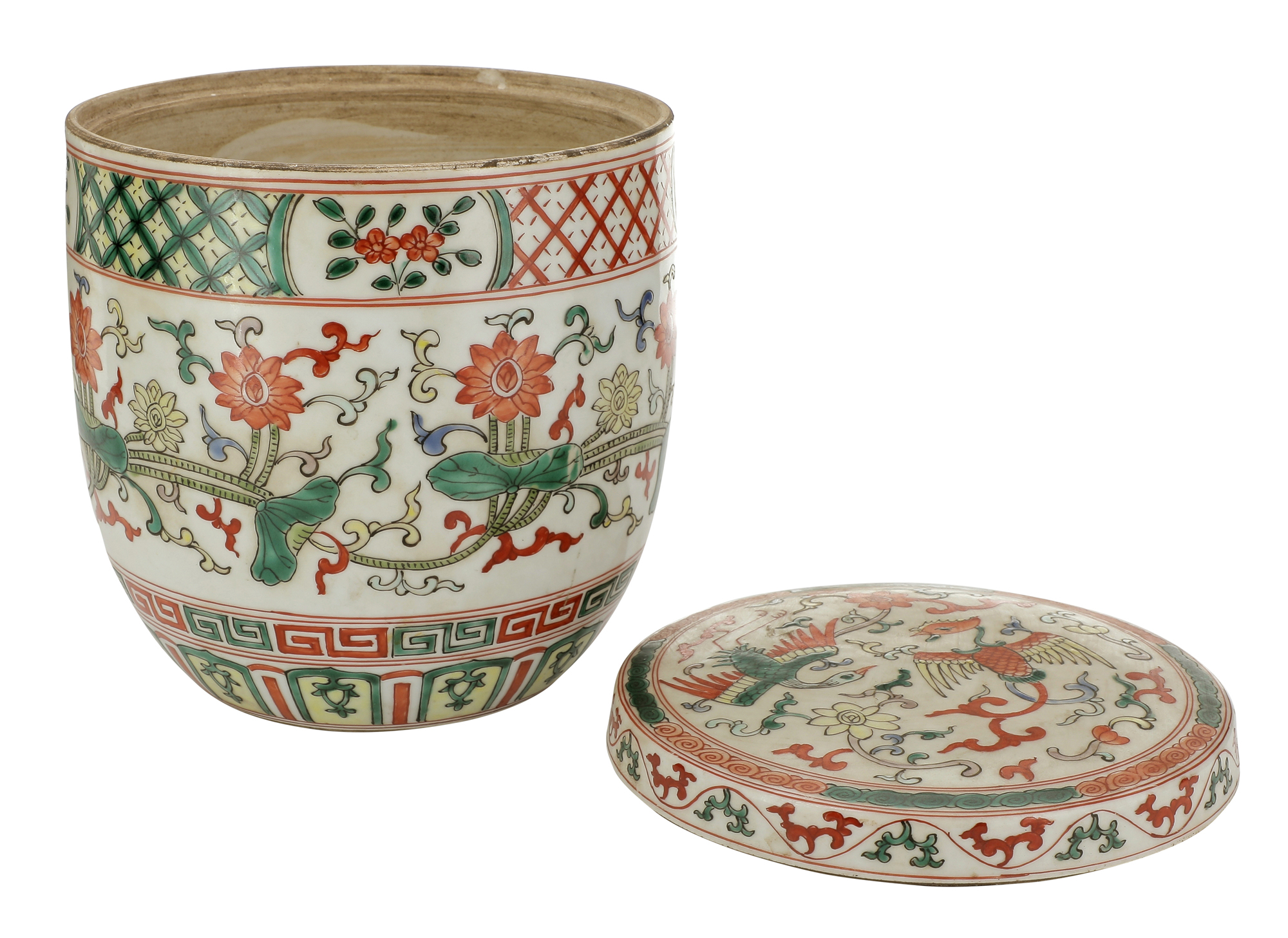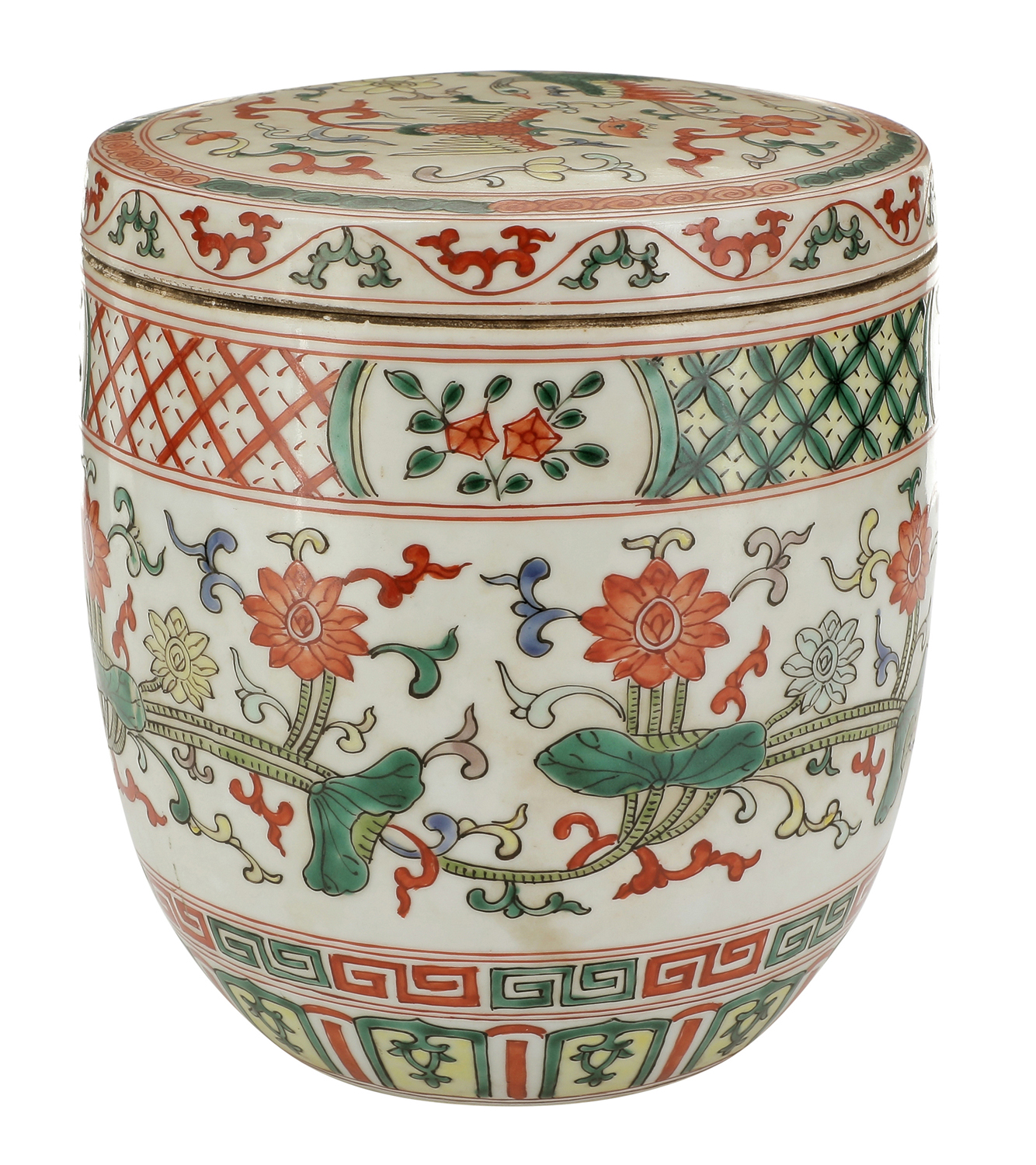 Cina Contenitore con coperchio con decoro di fiori di loto stilizzati