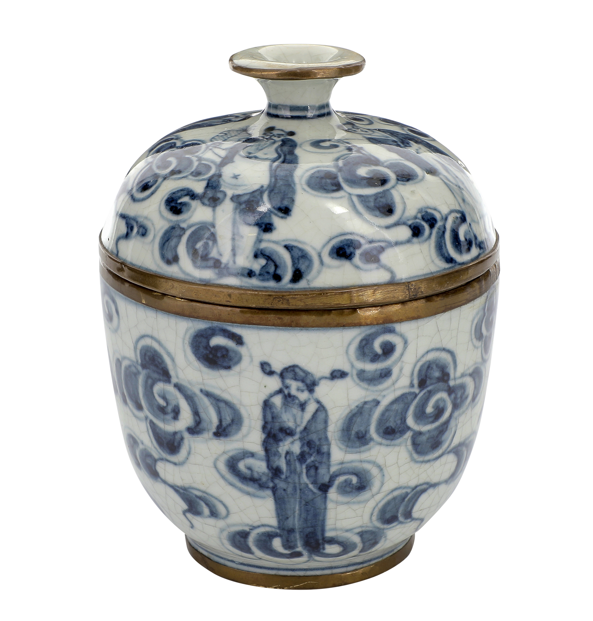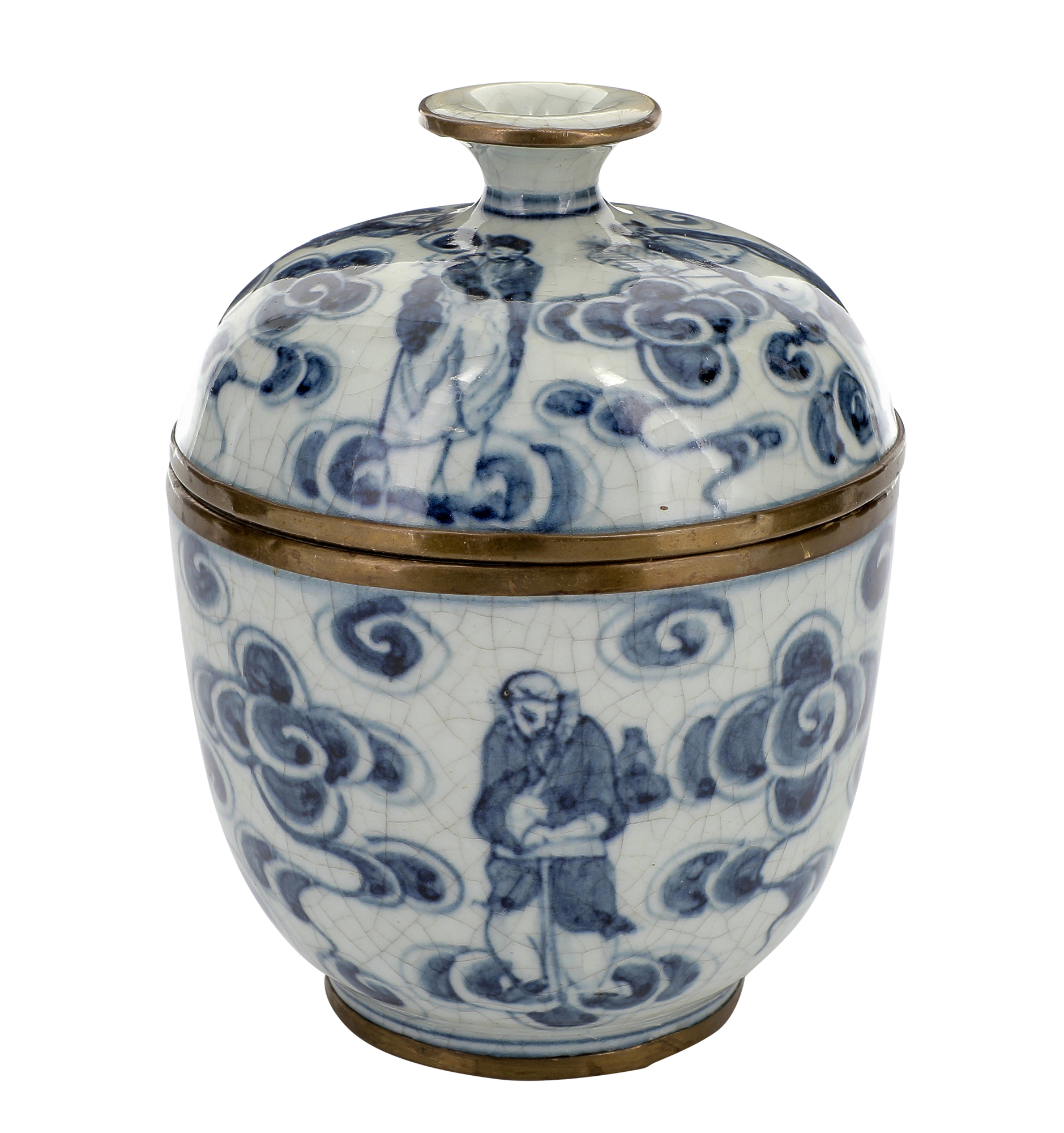 Ciotola con coperchio con decoro degli otto immortali taoisti