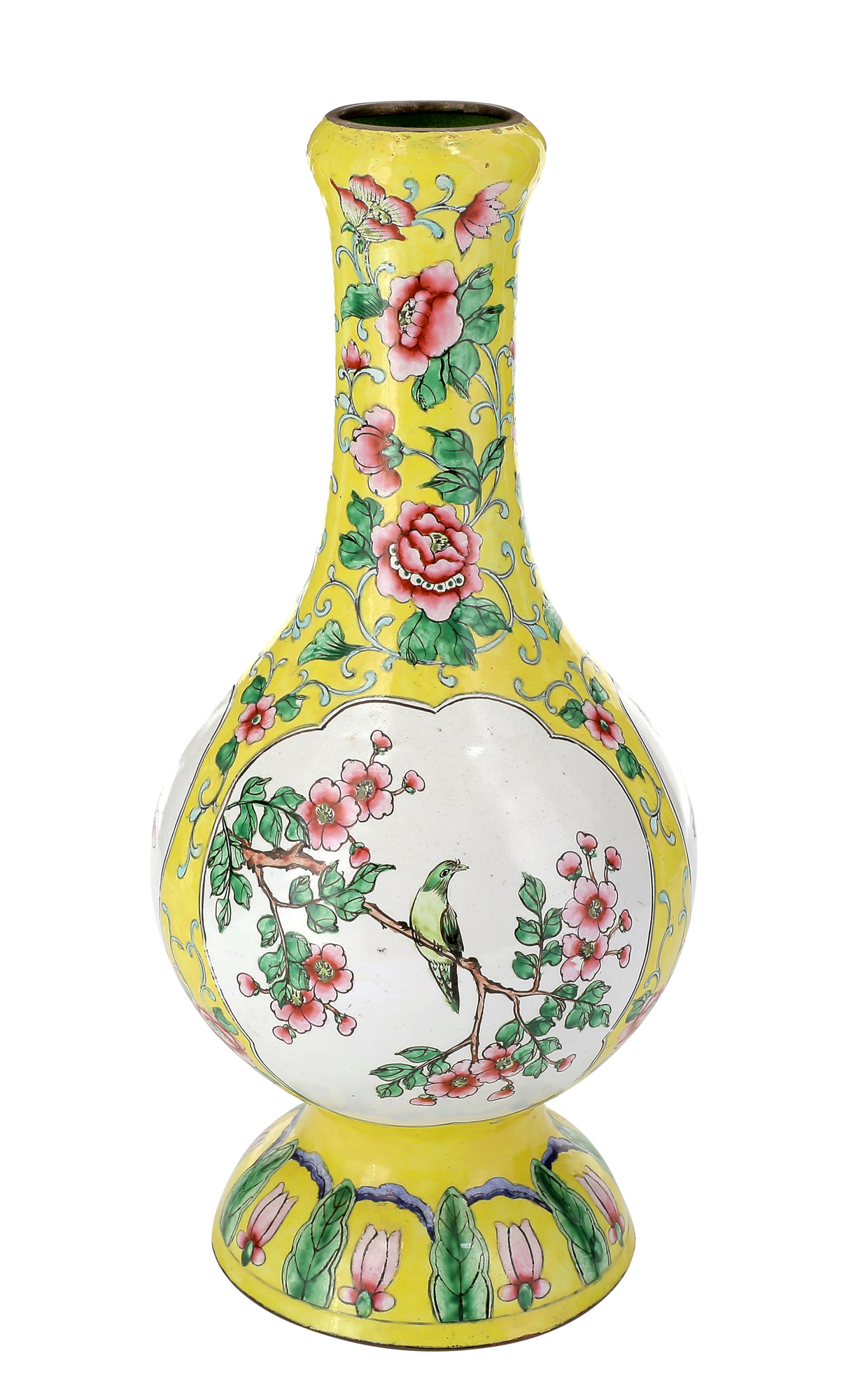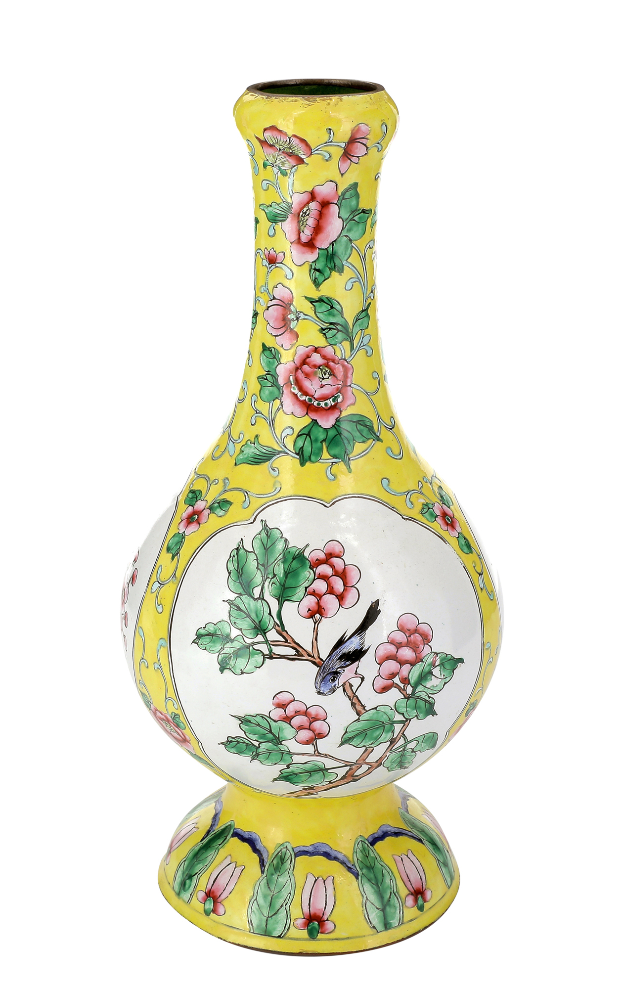 Cina. XX secolo Vaso a bottiglia con decoro di fiori e uccelli