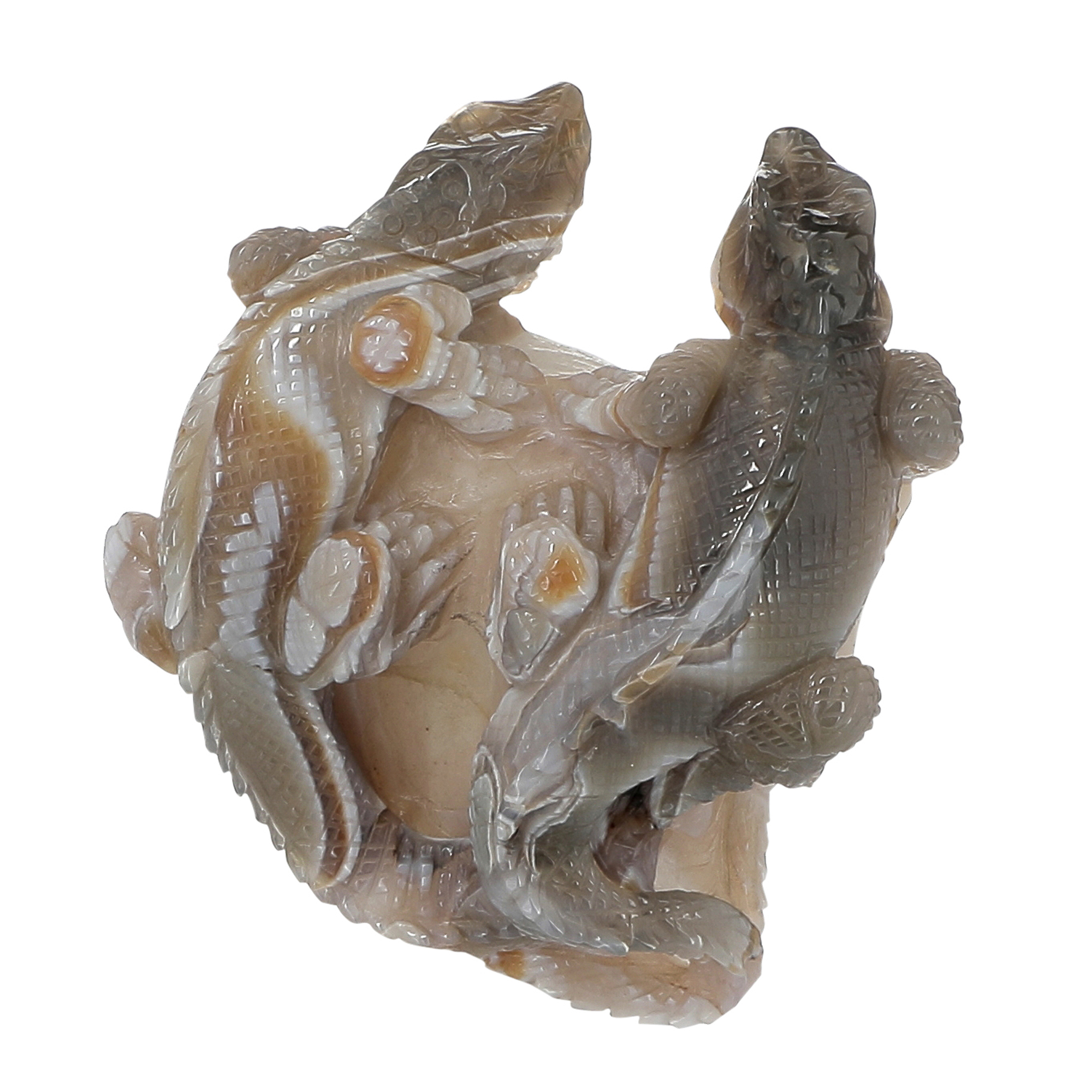 L’intagliatore, prendendo a pretesto un animale esotico rispetto alla fauna cinese, mostra la sua abilità nello sfruttare le caratteristiche naturali della pietra.