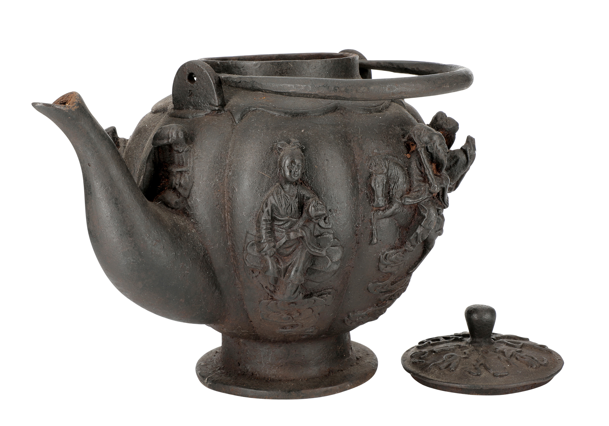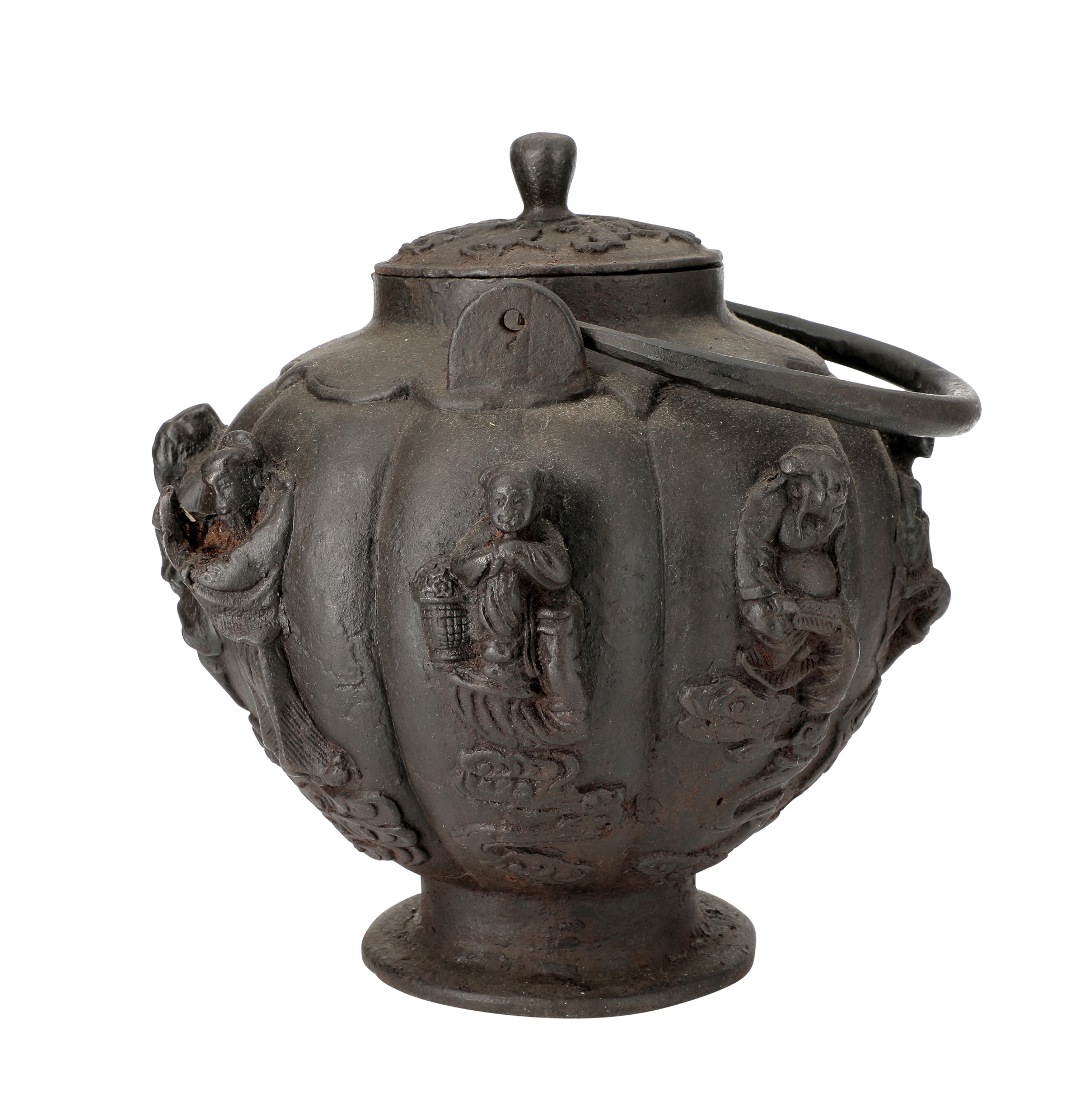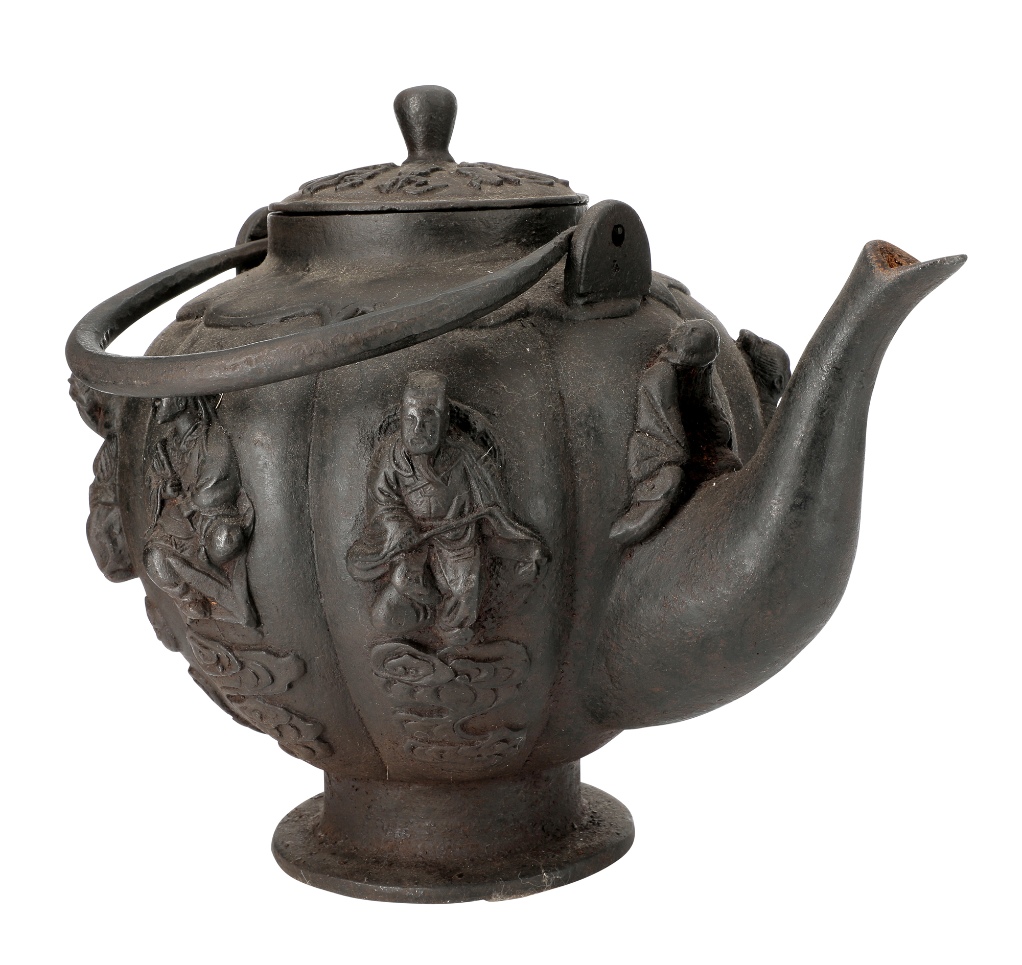 Cina. XIX secolo Teiera con coperchio decorata con gli otto immortali taoisti