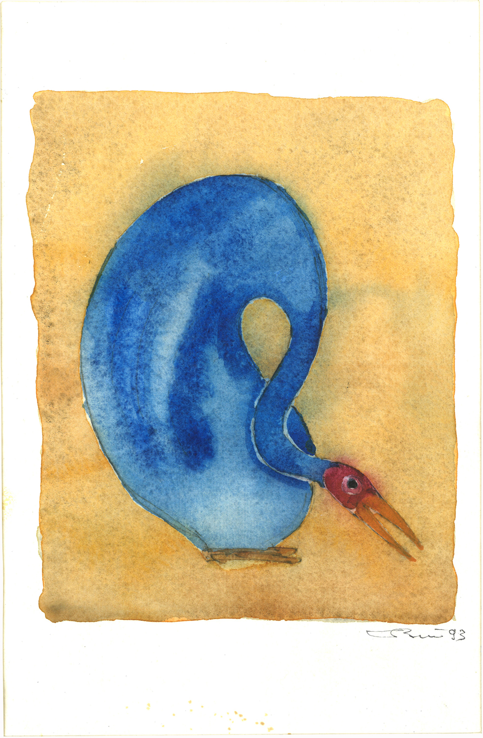 Questo disegno di animale onirico, quasi unione di airone e pinguino, è progetto per una spilla realizzata nel 1996 dall'orefice veneziano Sergio Tulini, cui si debbono numerose versioni d'oreficeria di opere di Toni Benetton (cfr. Paolo Rizzi, "Toni Benetton. L'oro di Tulini. Macro e Micro", Venezia Mestre, 1996). Ci sono due episodi che vale la pena di ricordare a proposito dei disegni di animali di Benetton. Il primo riguarda un bambino che chiese per Natale un disegno dello scultore raffigurante una papera. Il bimbo aveva, per pagare, solo una piccola somma che i genitori avevano messo in una busta chiusa. Benetton fece per lui una intera serie di disegni di diversa dimensione per dargli al possibilità di scegliere quello più adeguato al contenuto della busta. Il secondo riguarda il figlio di una celebre storica dell'arte, che da bambino frequentava casa Benetton e discuteva spesso con Toni di animali. "E se uniamo questo animale con quello, cosa succede?", chiedeva il bimbo. Benetton: "Proviamo!" Così sono nati molti animali onirici!